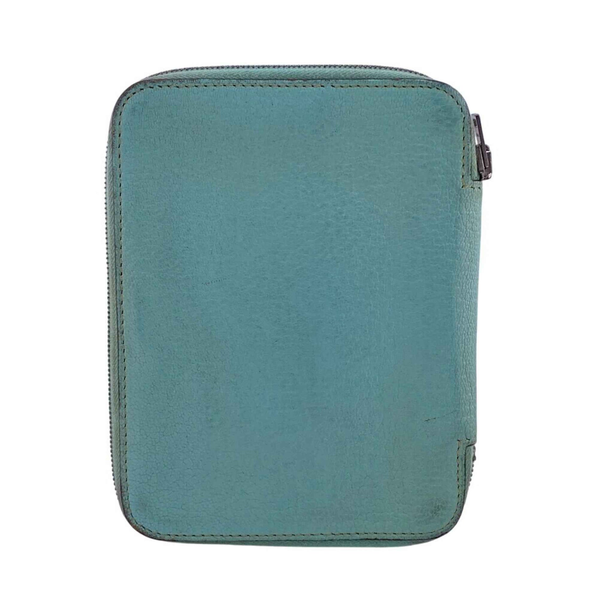 HERMES Hermes Agenda Zip Notebook Cover Passport Case Card Genuine Leather Blue Unisex Z0013009