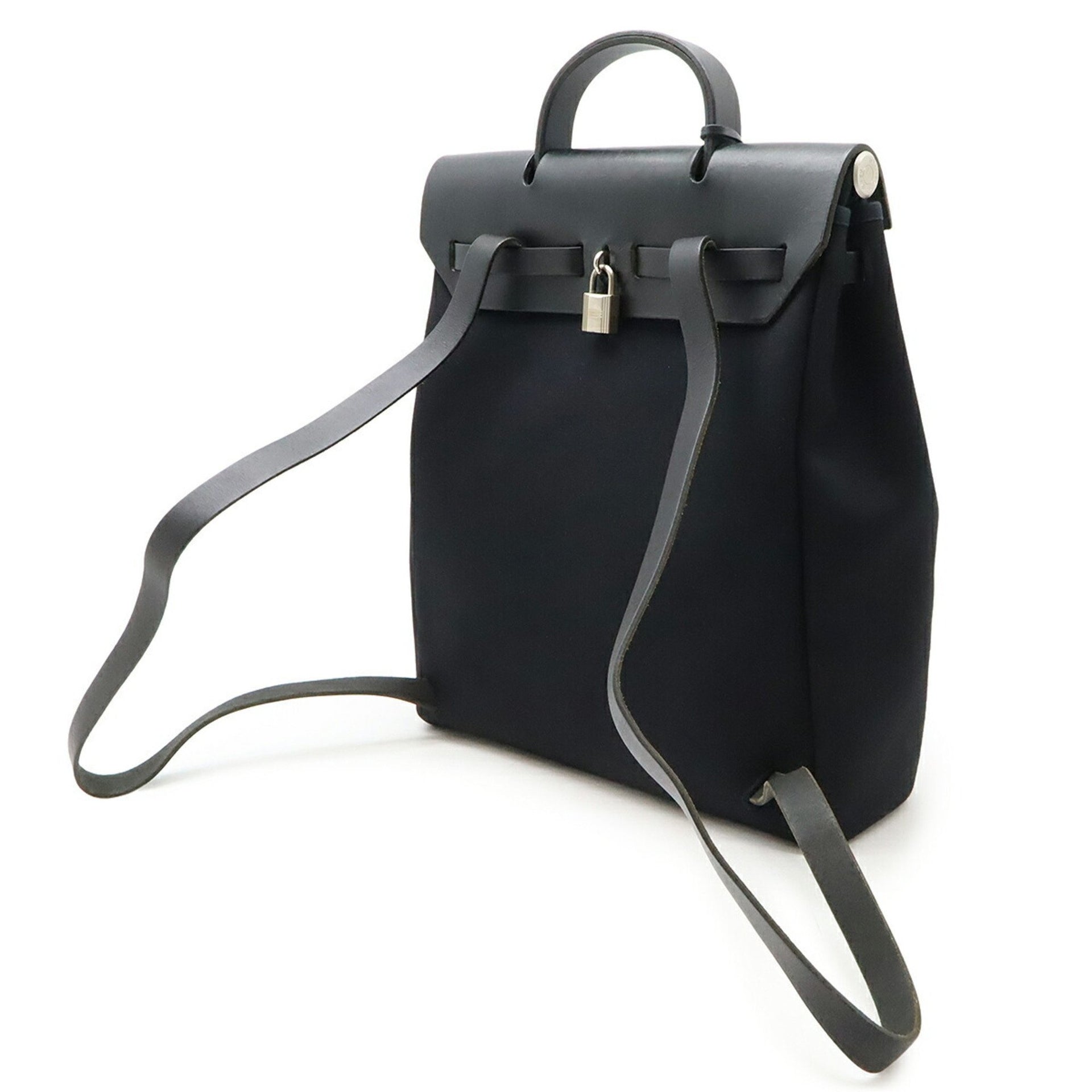 HERMES Hermès Airbag Ad PM Backpack/Handbag, Toile Officier Leather, Black, C Stamp
