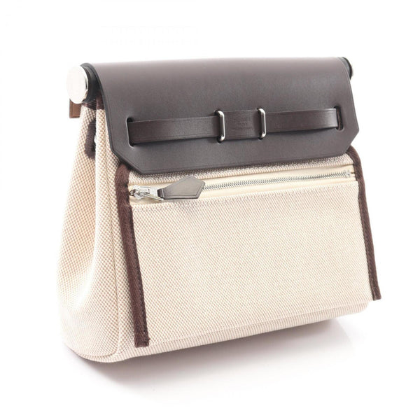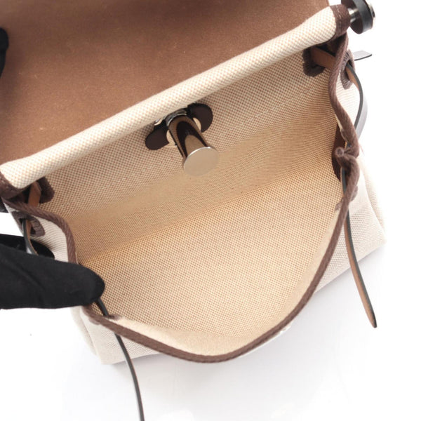 Hermes Hermès Airbag Zip Mini Shoulder Bag, Canvas and Leather, Toile H / Vache Hunter H, Women\'s, Beige Brown Ebene