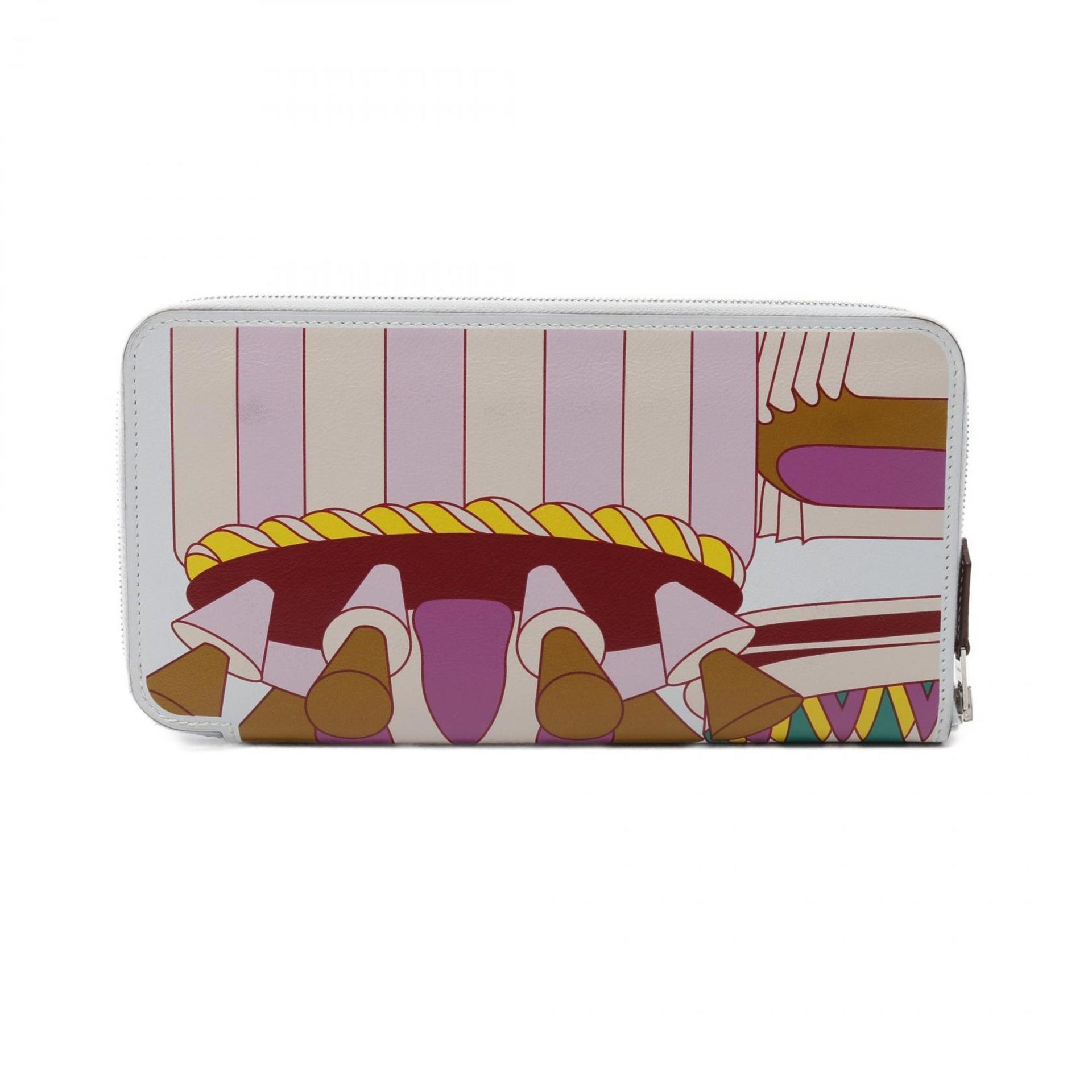 Hermes HERMES Azap Long Silk In La Patisserie Francaise Round Wallet Calfskin (Cowhide) Veau Swift Women\'s Blue Multicolor