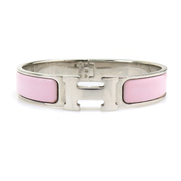 Hermes HERMES Bangle Bracelet Click Clack Metal Enamel Silver Light Pink Women\'s e60507a