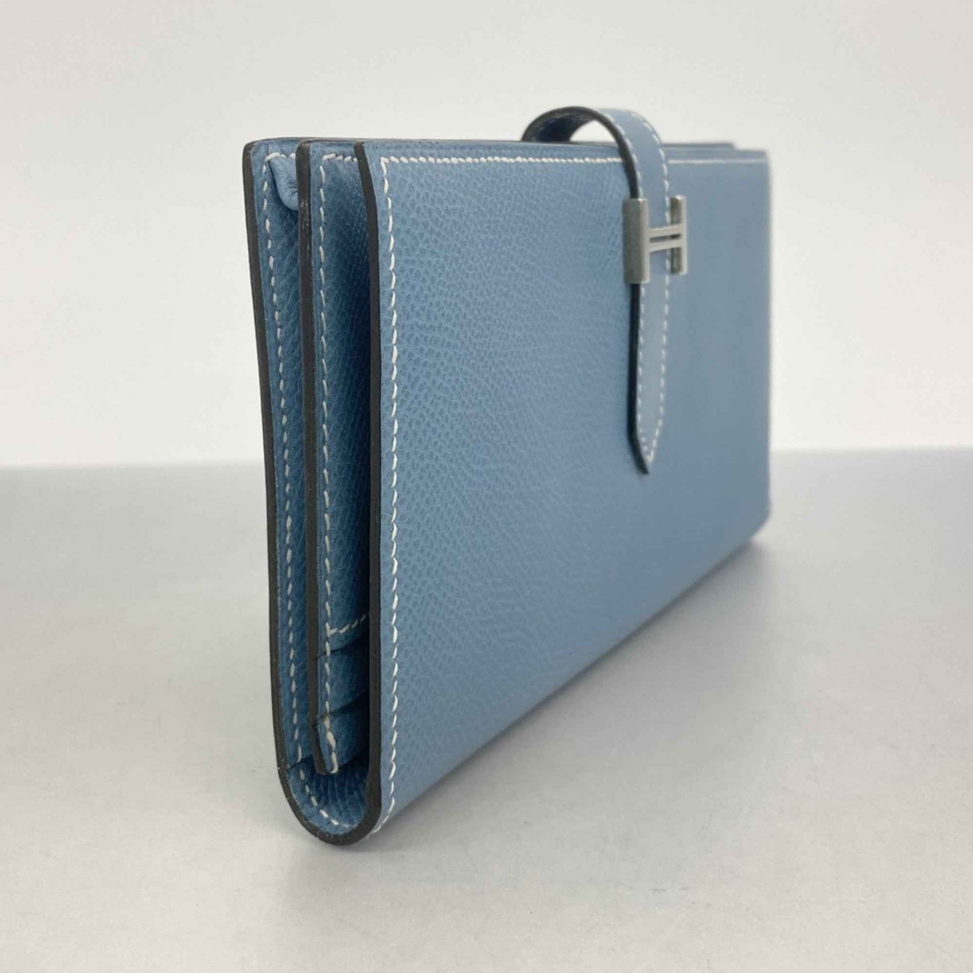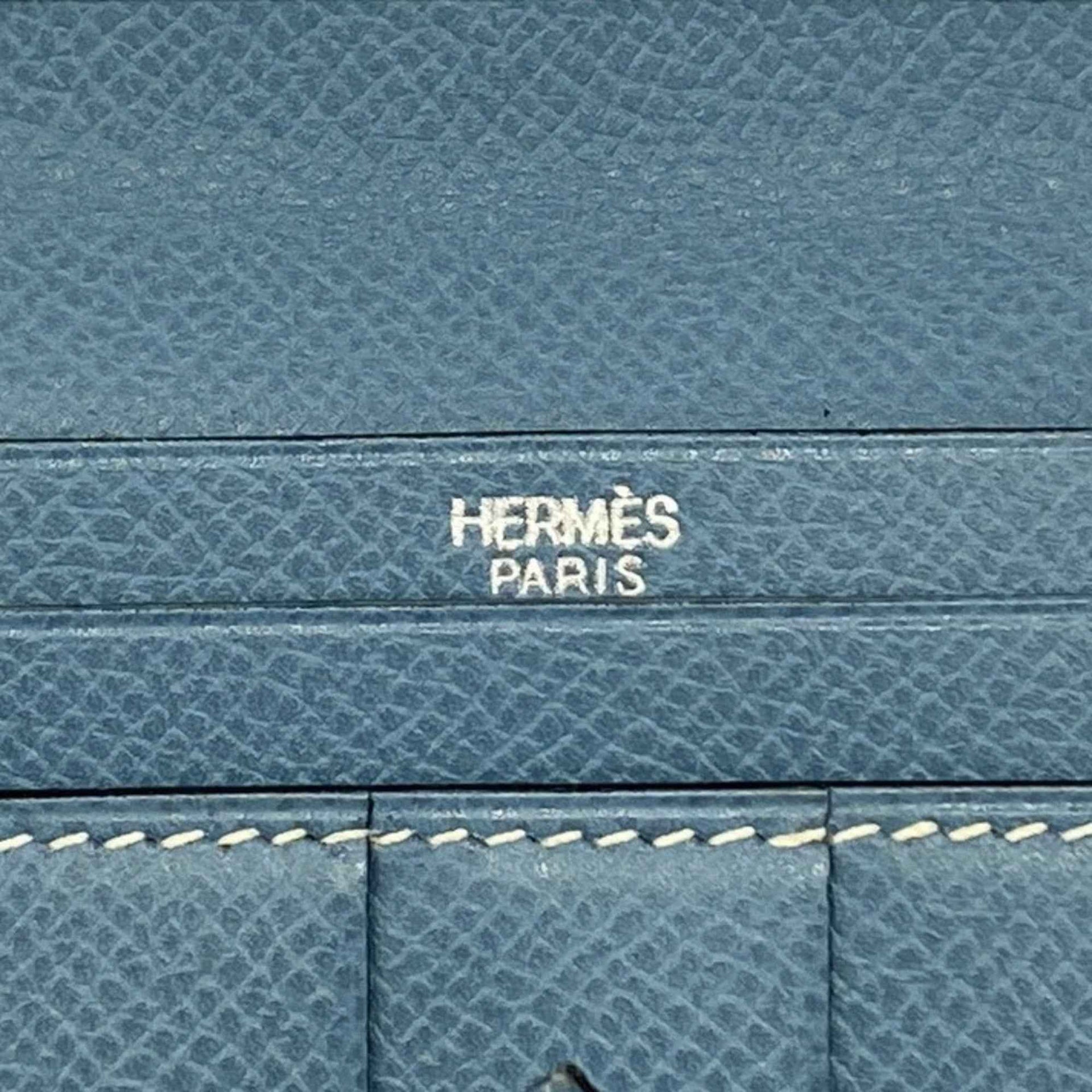 Hermes Hermès Bearn Soufflet Long Wallet in Epsom Leather, Blue Jean, K Stamp, Men\'s and Women\'s