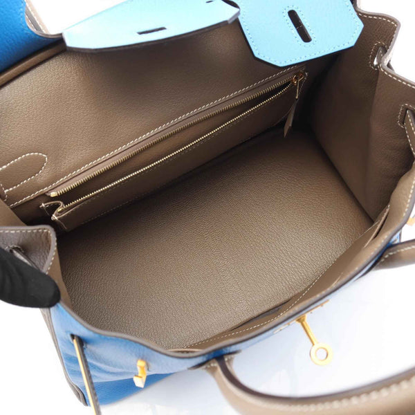 Hermes Hermès Birkin 30 Bleu Hydra Etoupe Handbag Bag Chevre Women\'s Blue/Brown