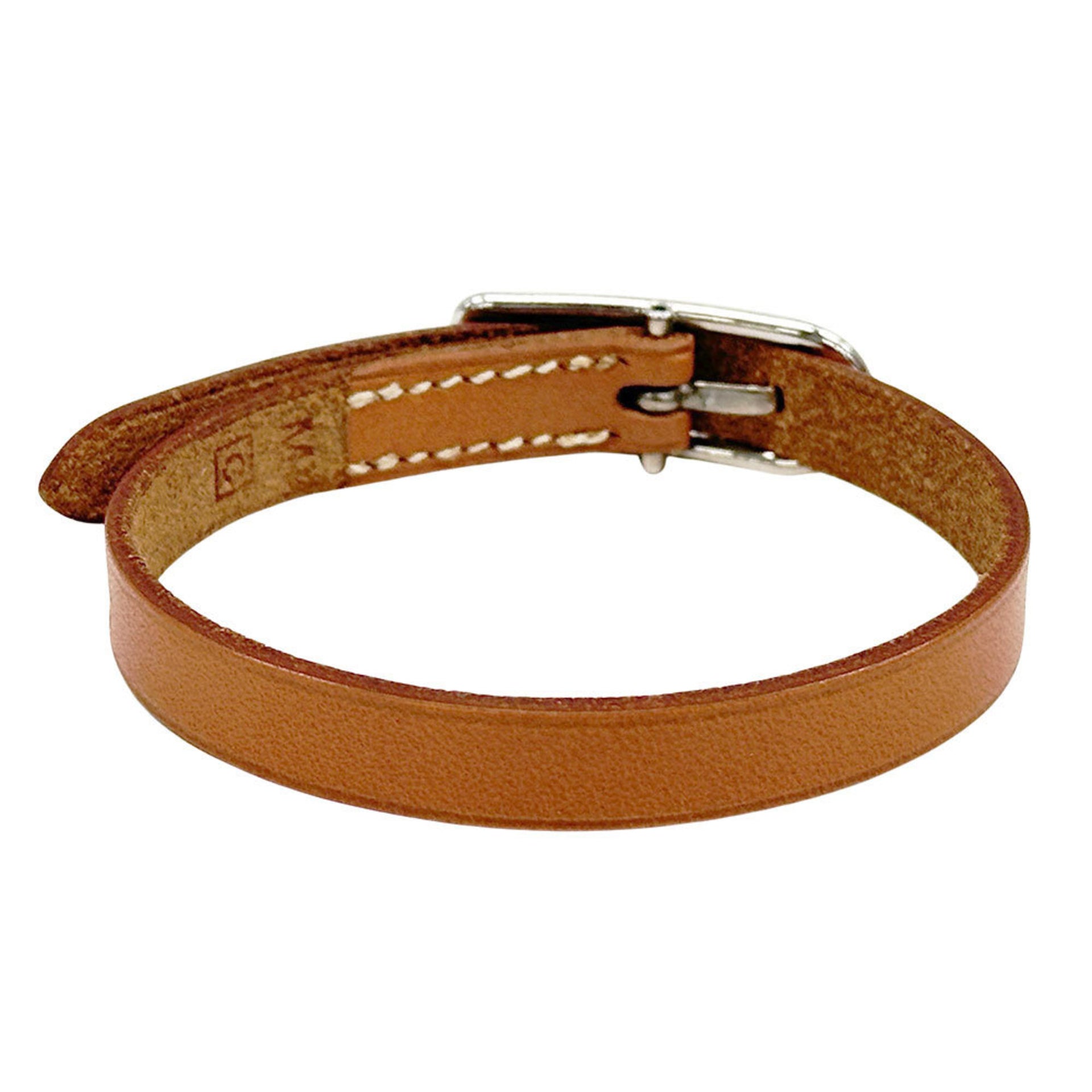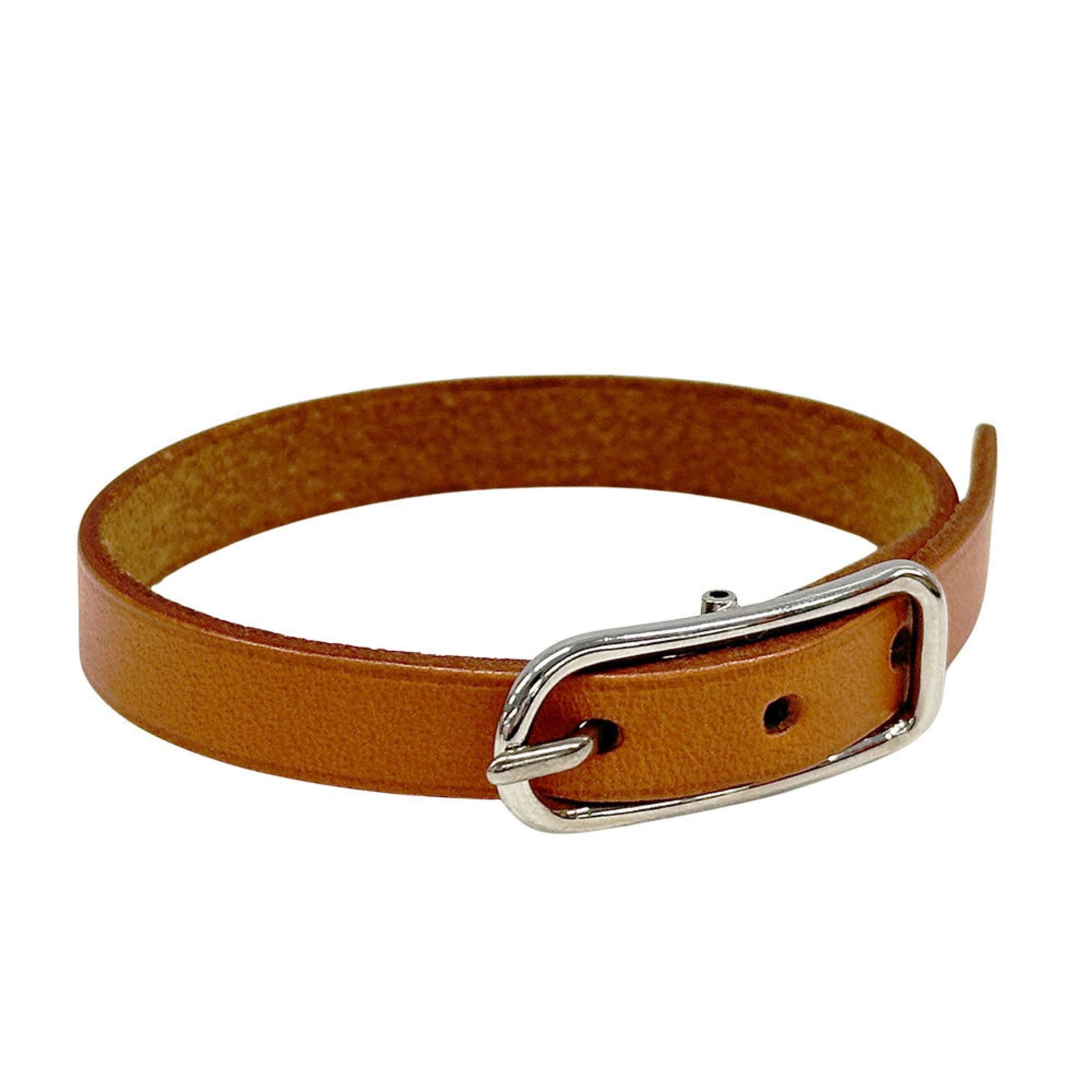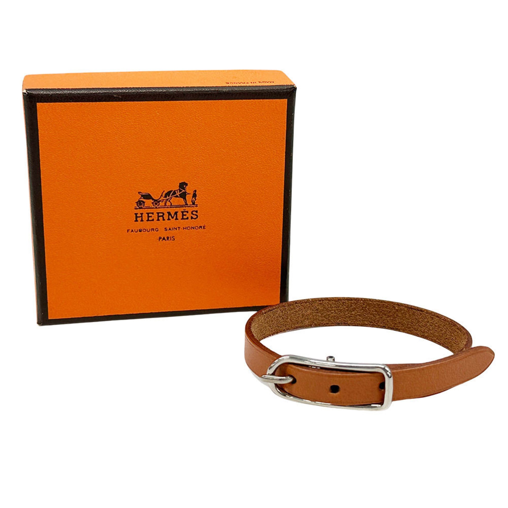 Hermes HERMES Bracelet for Women, Brand: Api 1, Leather, Brown, Silver Hardware, Size M, Belt Style, □C (Manufactured in 1999)