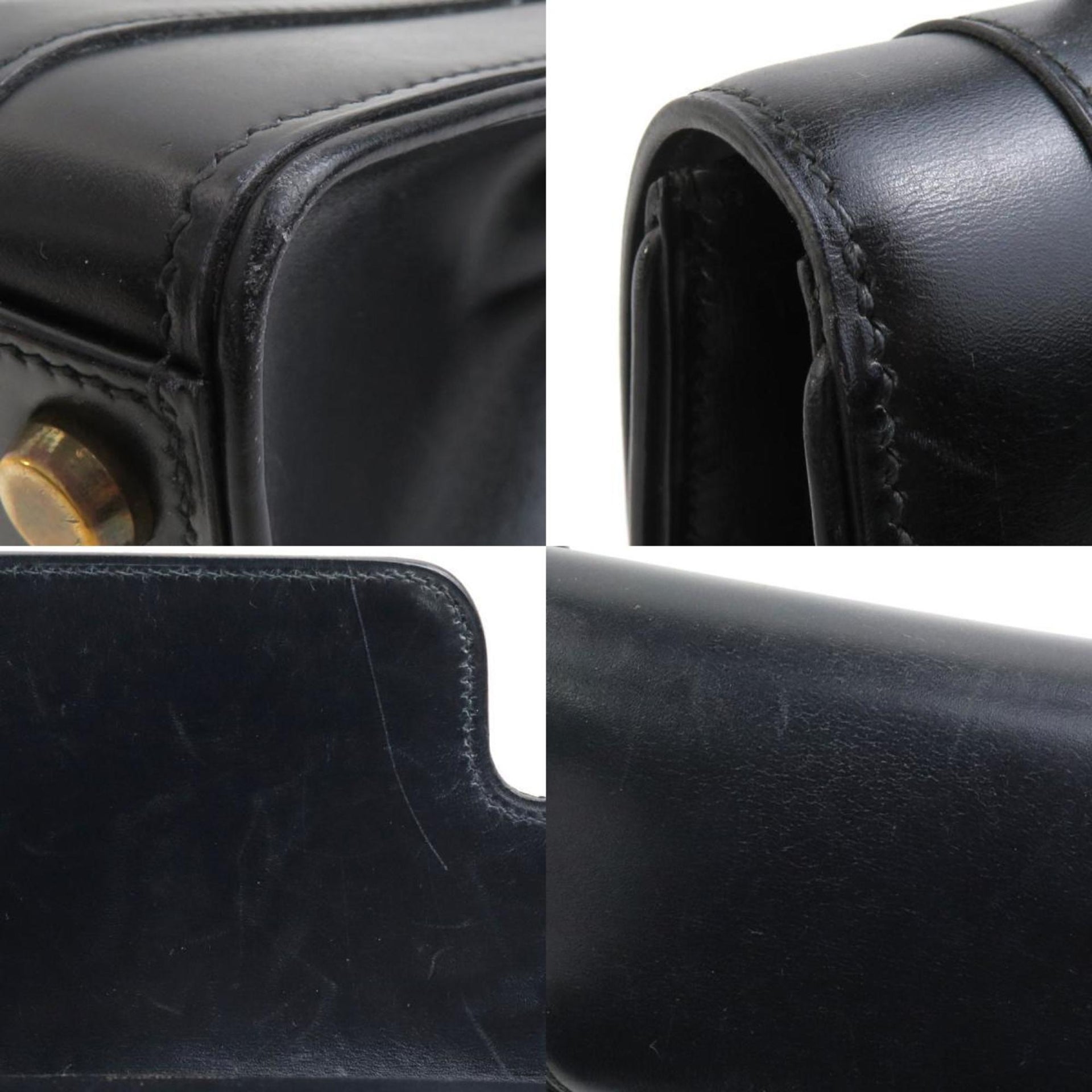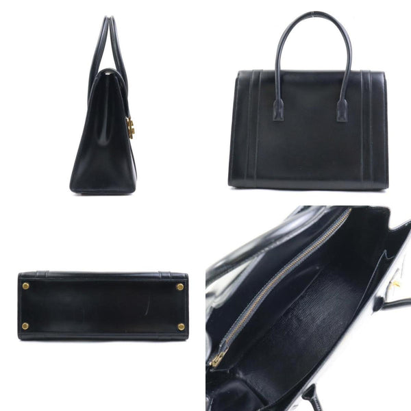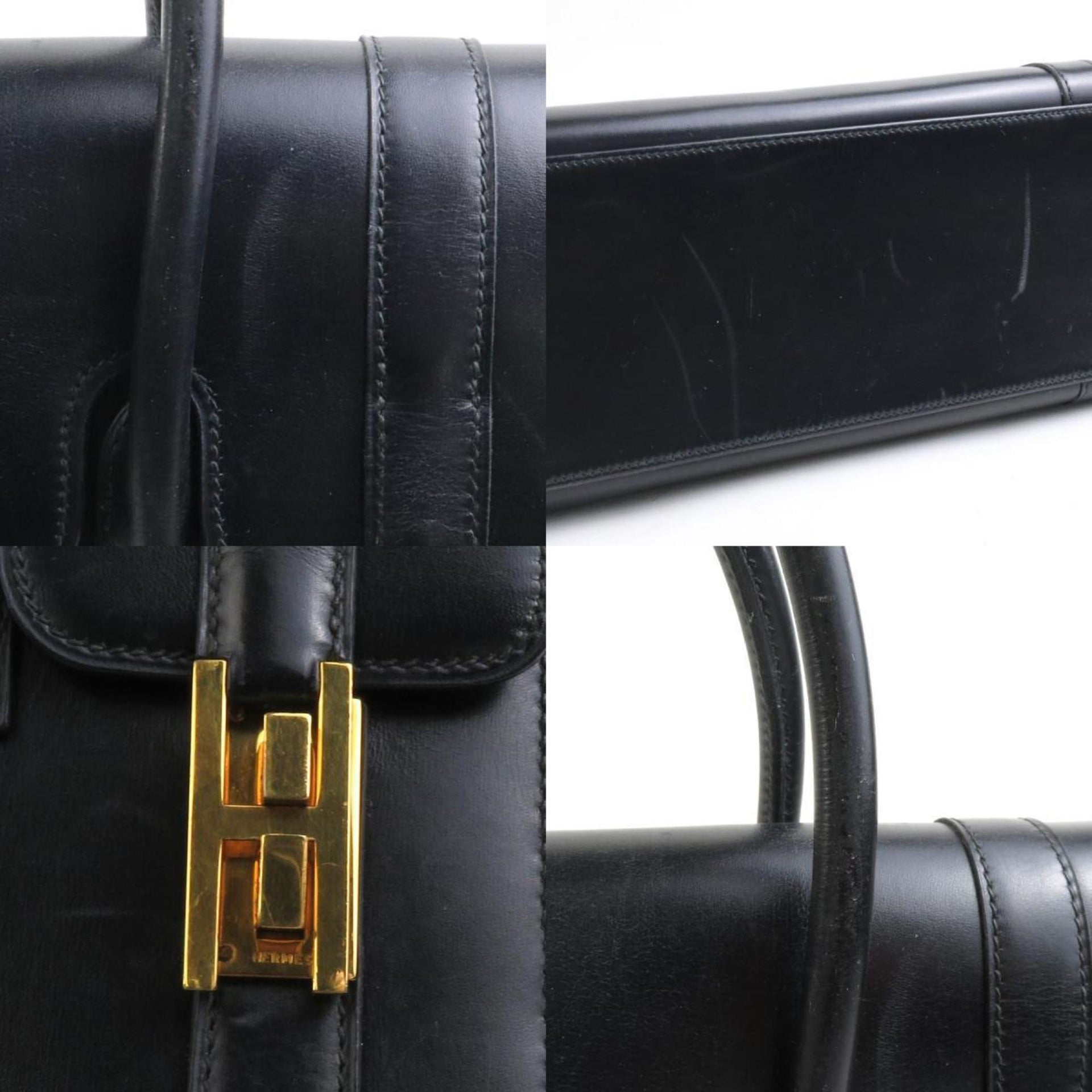 Hermes HERMES Handbag Drag 27 Box Calf Scarf Black Gold Women\'s a0535
