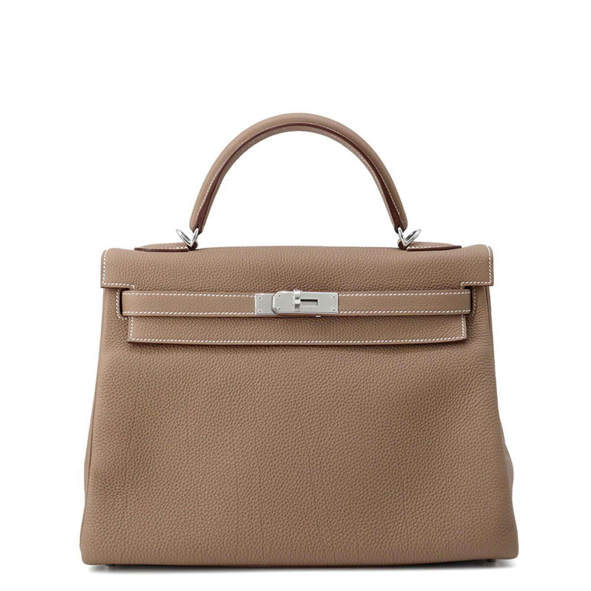 Hermes Hermès Kelly 32 Handbag with Inner Stitching, Etoupe Togo, and Y Stamp, 2-Way Shoulder Bag