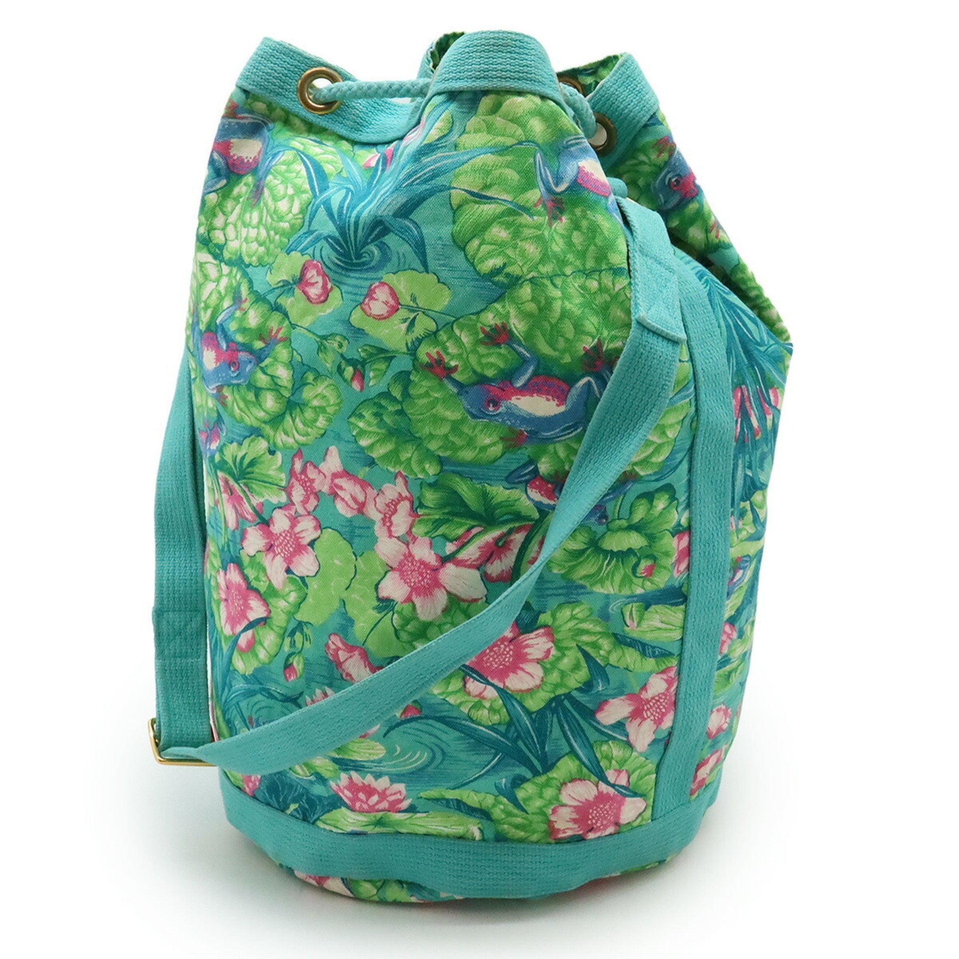 HERMES Hermes Shoulder Bag, Frog Print, Flower Canvas, Green, Multicolor