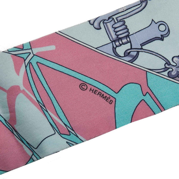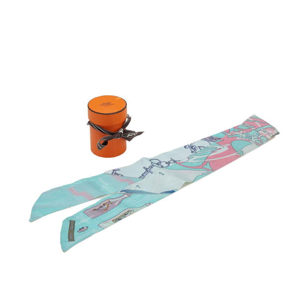 Hermes Hermès Twilly Caleche Mors et Boteilles (Hami and Bottle) Scarf, Blue Multicolor Silk, Women\'s
