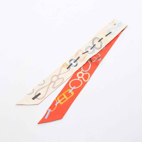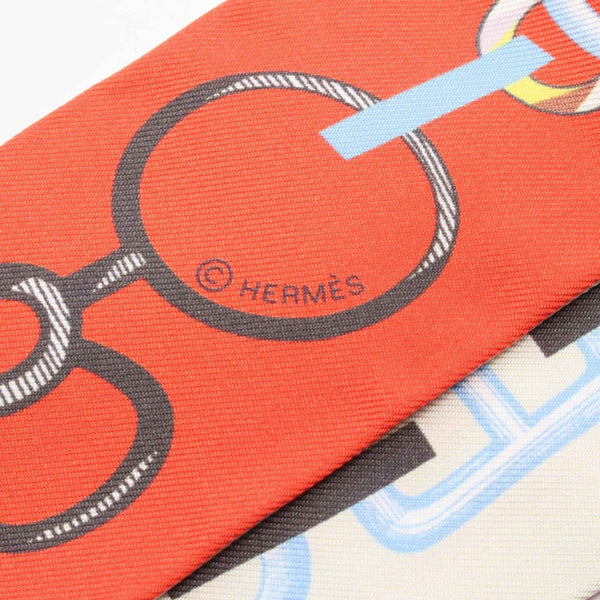 Hermes Hermès Twilly Do Re Boucles Silk Scarf for Women, Beige, Red, Multicolor