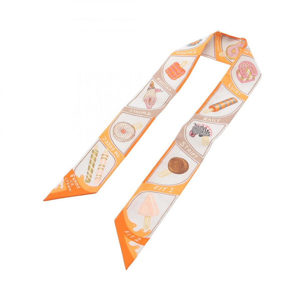 Hermes Hermès Twilly FUNNY ICE CREAM Silk Scarf for Women in White, Orange, and Multicolor