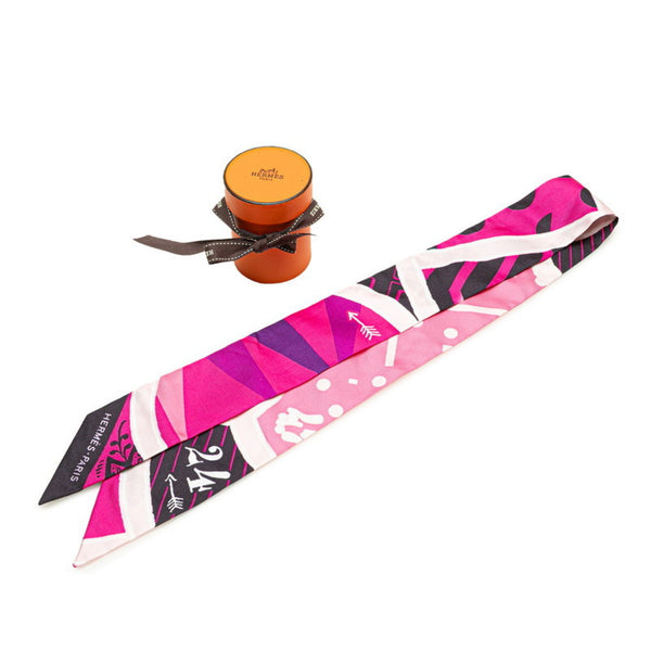 Hermes Hermès Twilly \"JEU DE SOIE UNIFORME\" Silk Game Scarf, Pink Multicolor, Women\'s