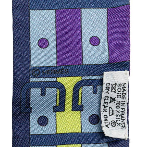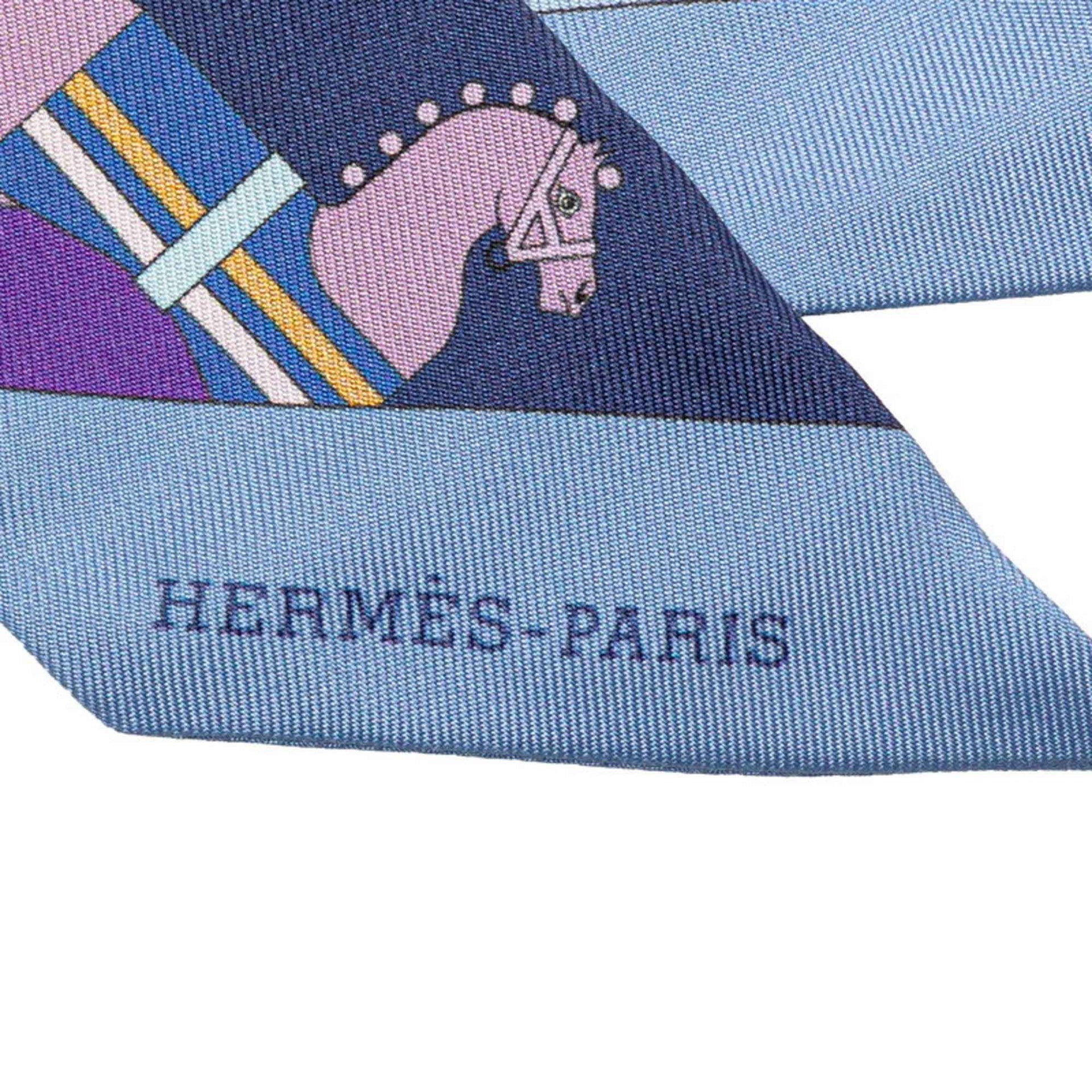 Hermes Hermès Twilly Rocabar Horse Print Scarf/Muffler in Purple, Navy, and Multicolor Silk for Women