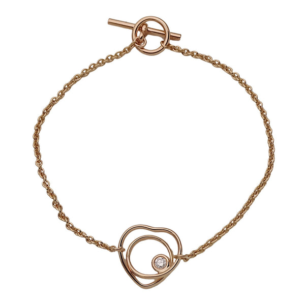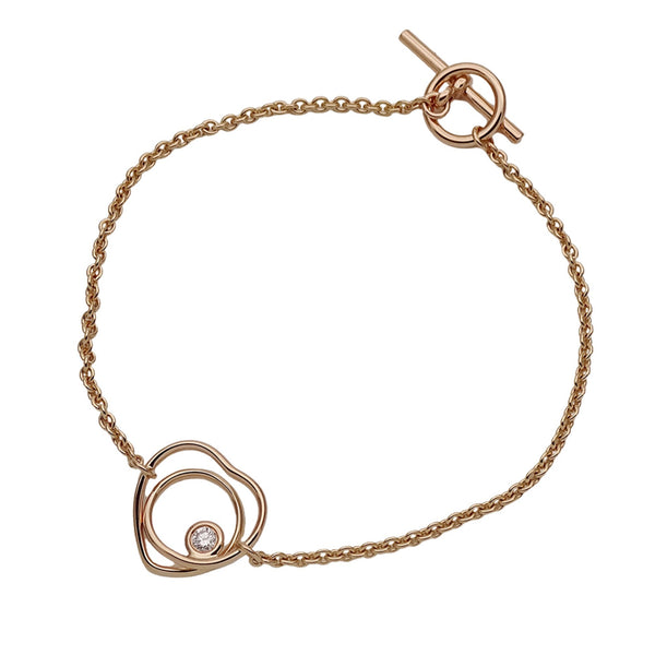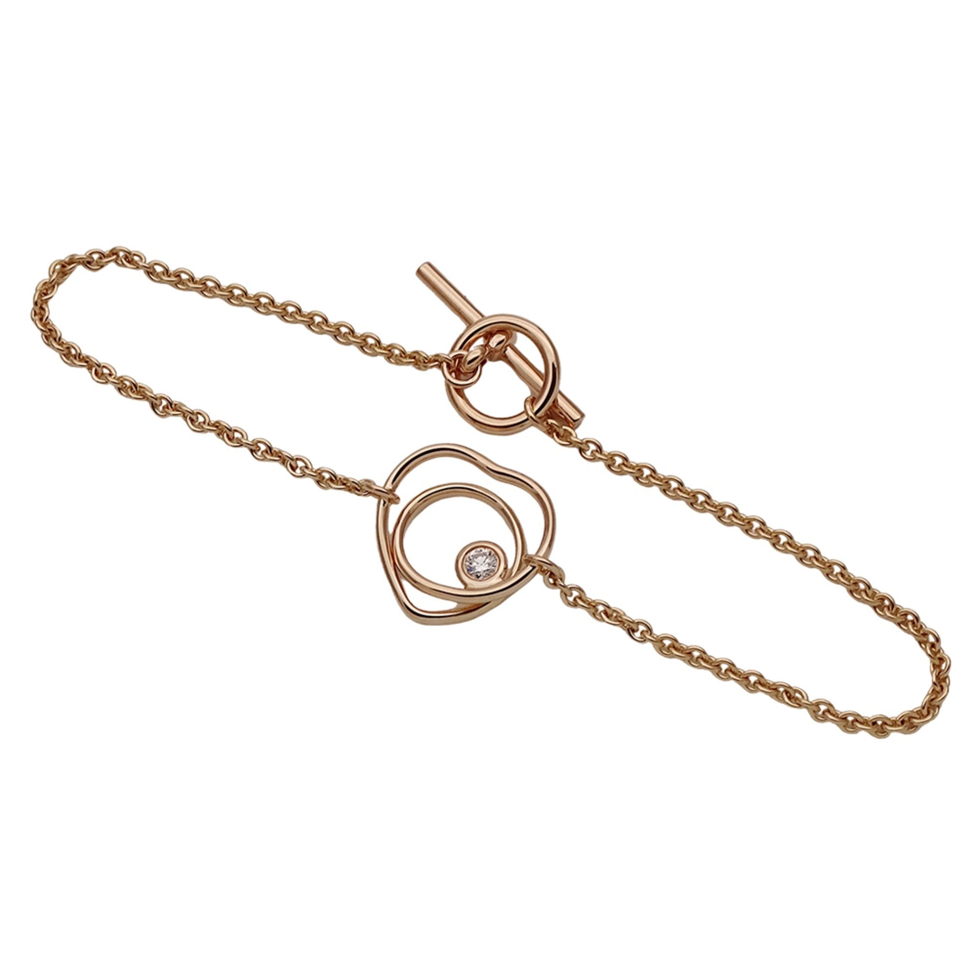 Hermes Hermès Vertige Cool TPM Women\'s Heart Bracelet in 750PG Pink Gold with One Diamond, SH Size, Polished