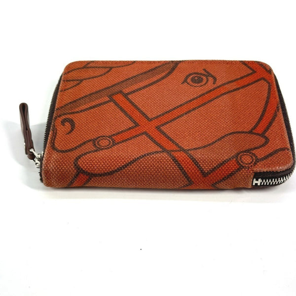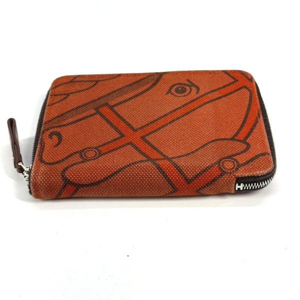 HERMES Horse Steeple PM Compact Wallet Round Zipper Bi-fold Canvas Men\'s Women\'s Orange