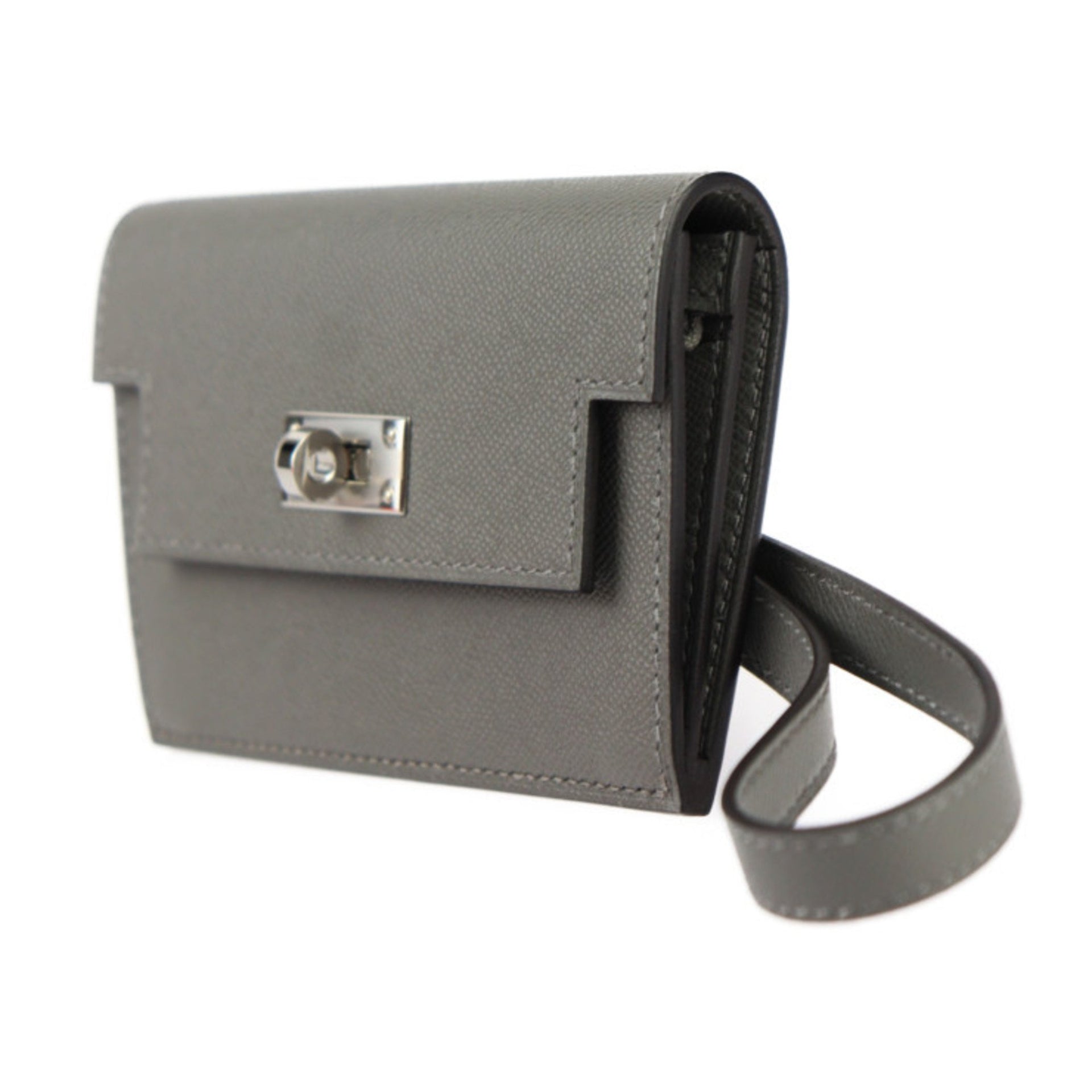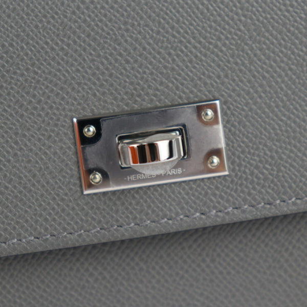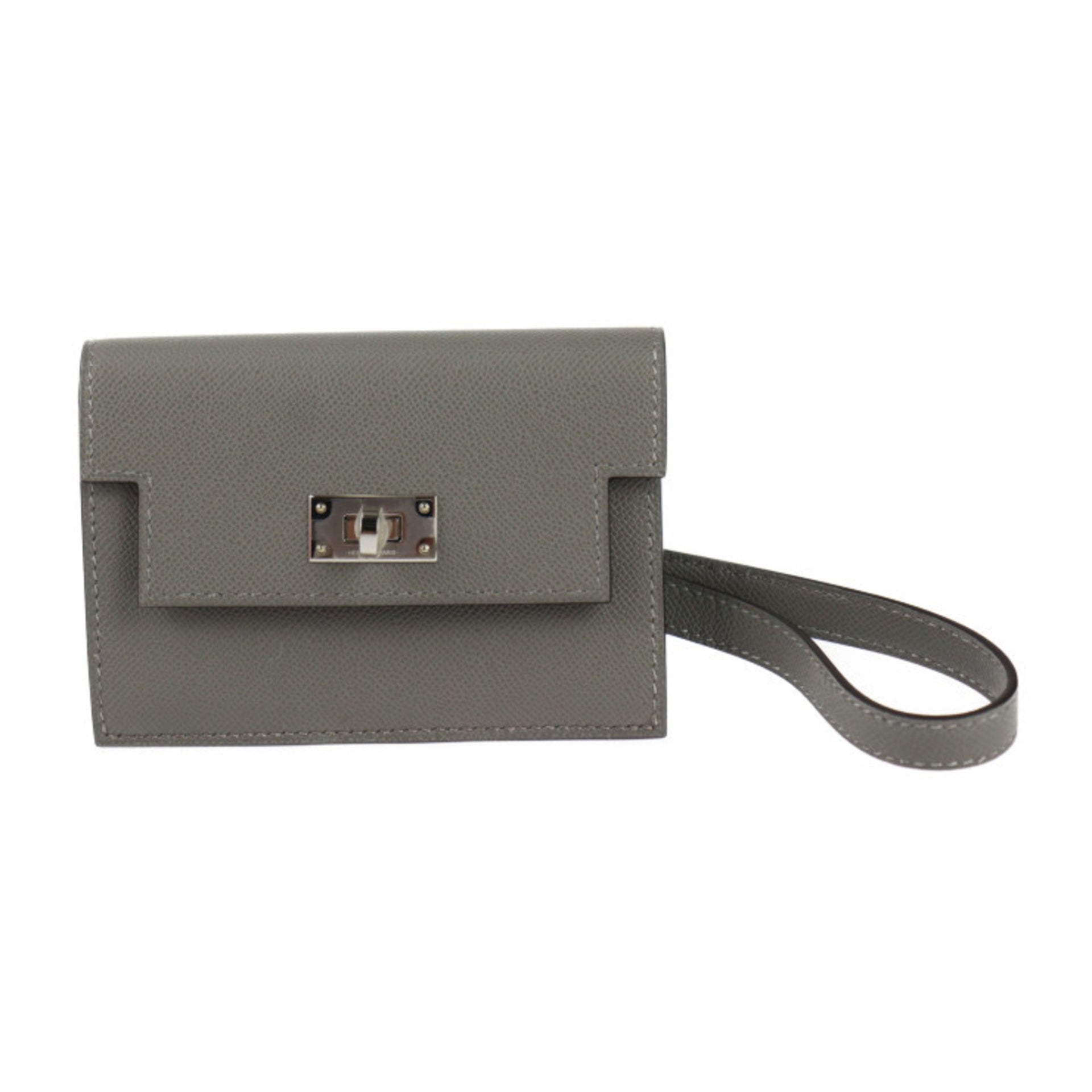 HERMES Kelly Pocket Wallet/Coin Case - Madame Veau Grimeyer Wristlet Business Card Holder/Card W Engraved Gray R2425073010108
