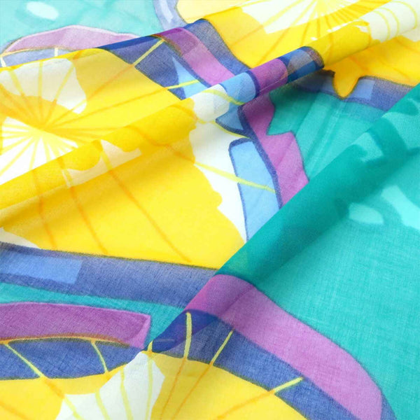 HERMES Large Stole Scarf/Shawl/Spareo with Lotus Leaf Design, 100% Cotton, Yellow, Green, and Multicolor