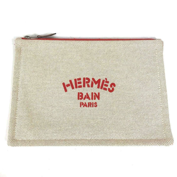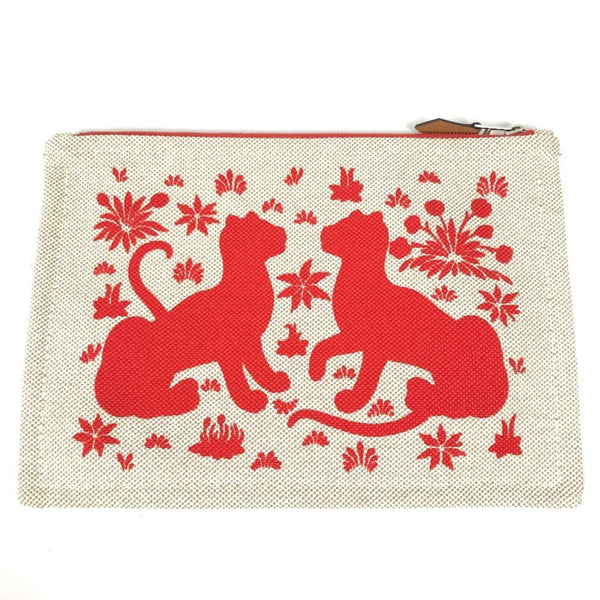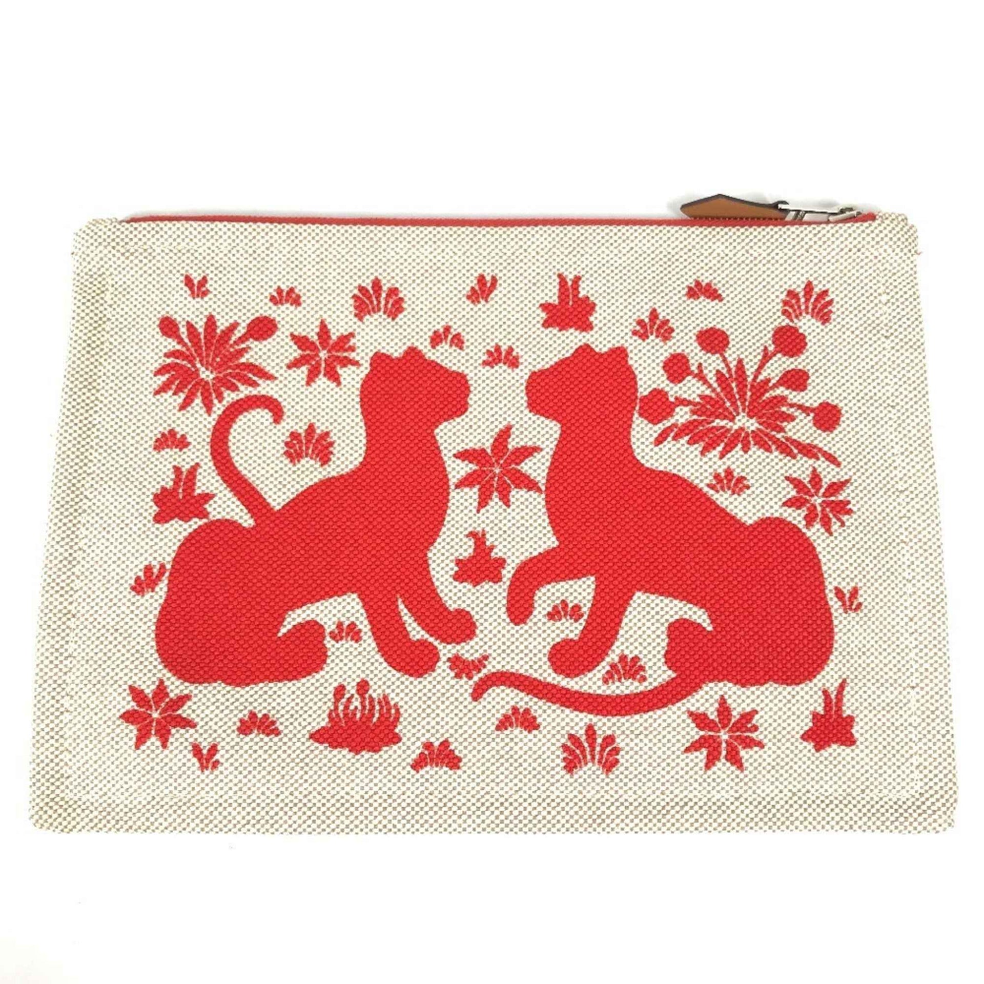 HERMES Leopard New Yachting PM Flat Pouch, Multi-Pouch, Clutch Bag, Cotton, Red, Men\'s and Women\'s