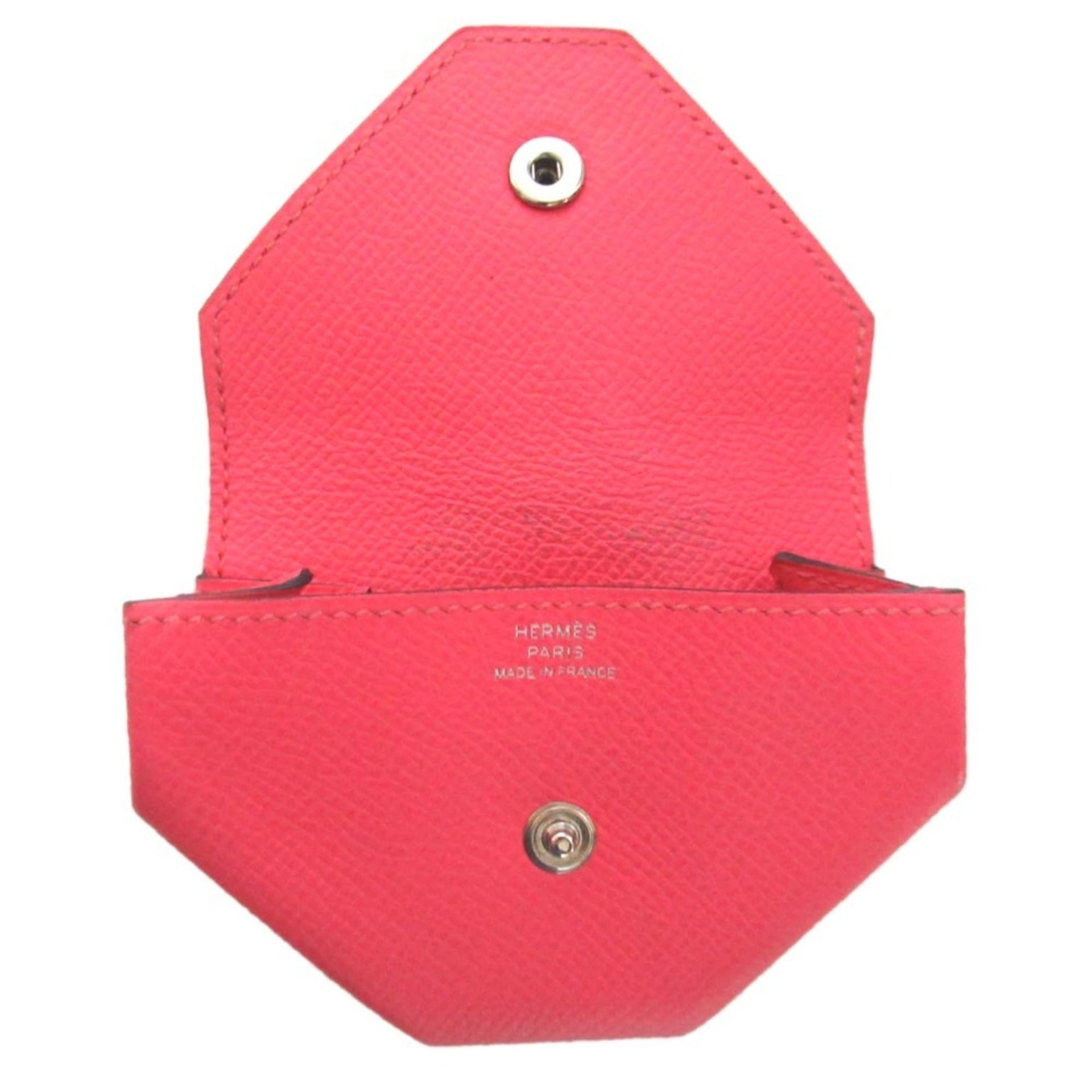 HERMES Levain Quatre Epsom Leather Flap Wallet/Coin Case with Serie Buttons, Rose Azalee, Women\'s