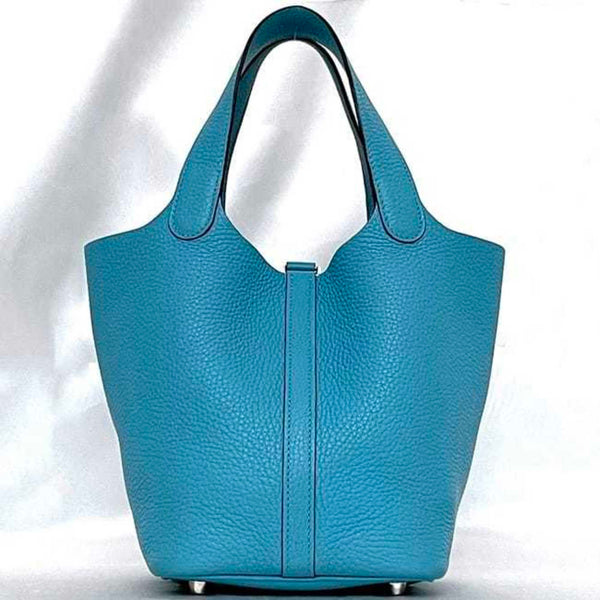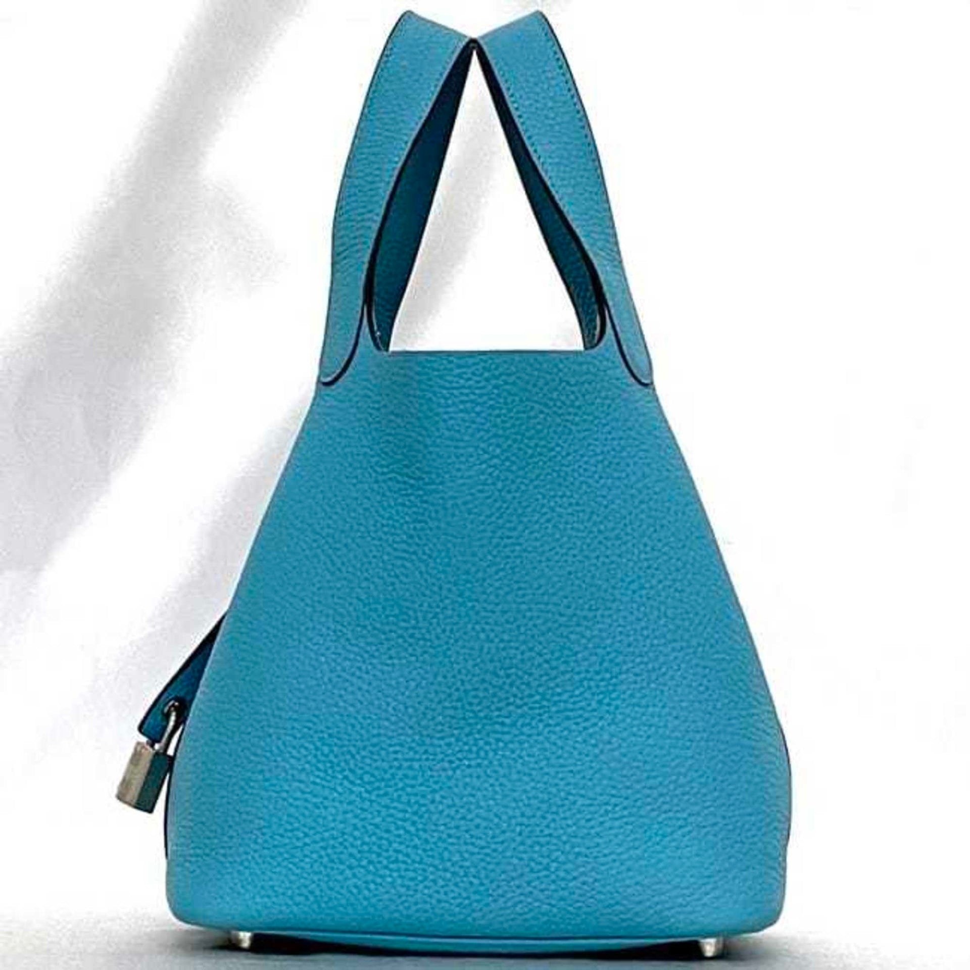 Hermès Picotin Lock PM handbag f-23696 in light blue, blue jean, Taurillon Clemence leather, palladium hardware, Y stamp, 2020, HERMES padlock, P for men and women.
