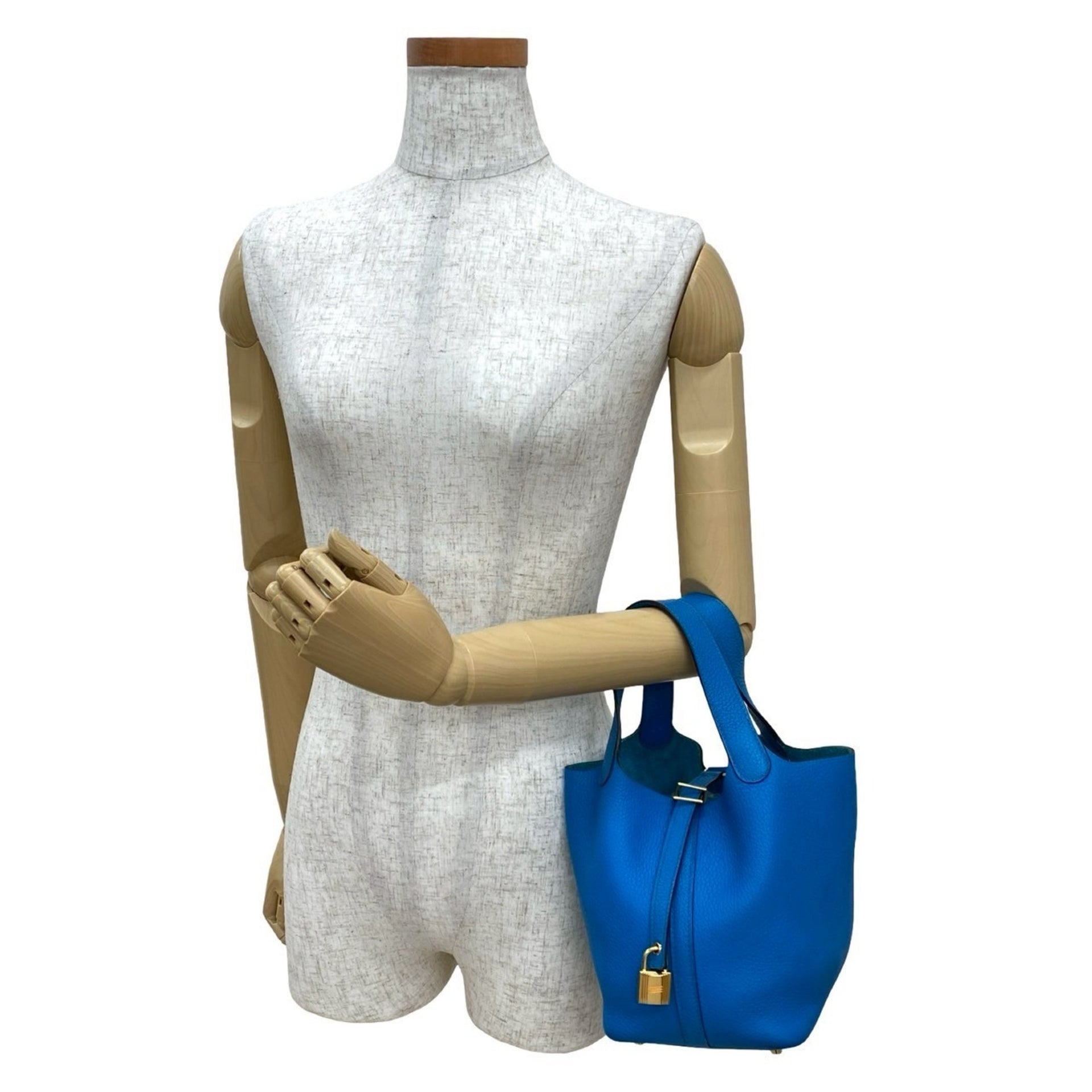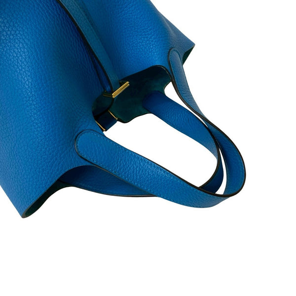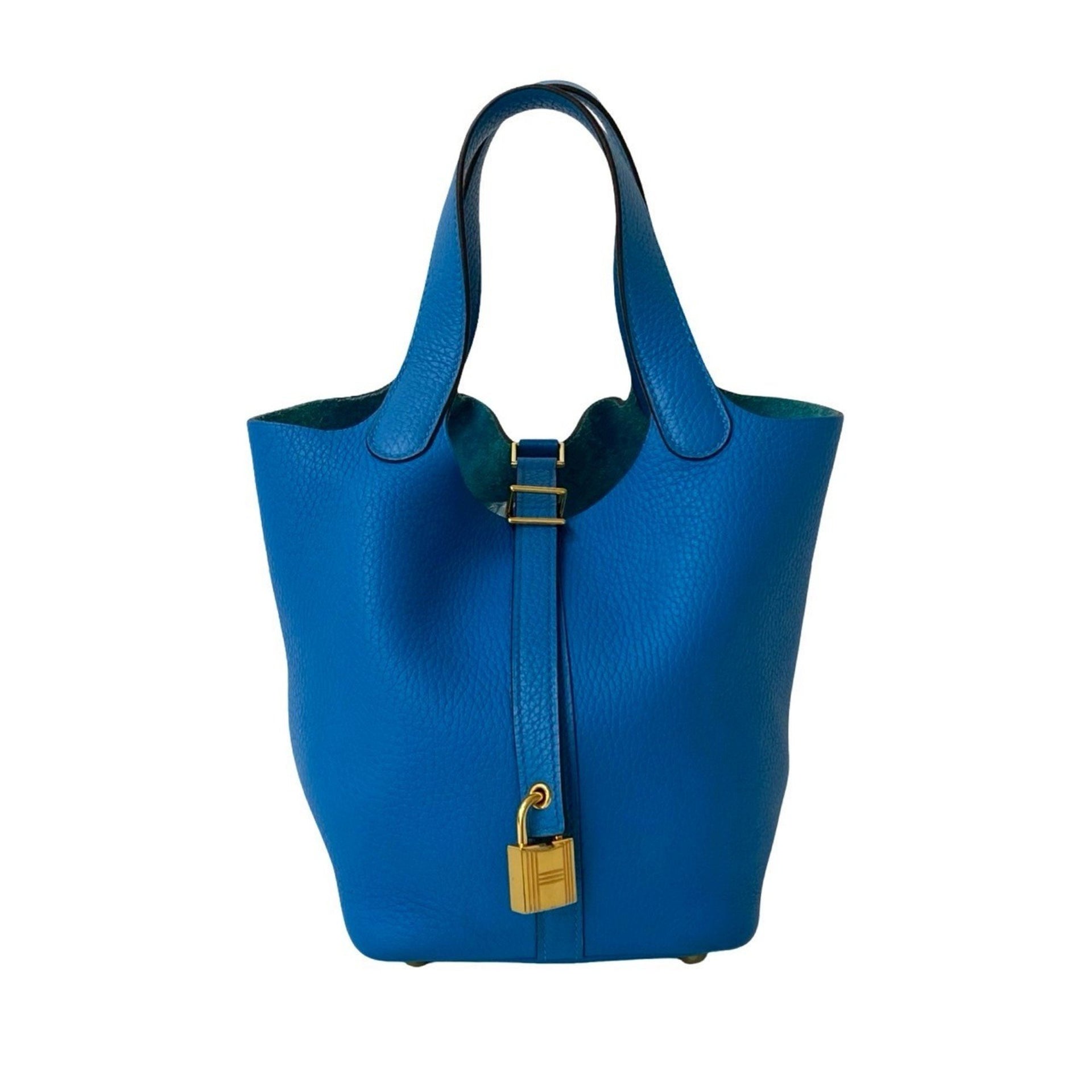 HERMES Picotin Lock PM Taurillon Clemence Leather Handbag/Mini Tote Bag, Blue, 25492