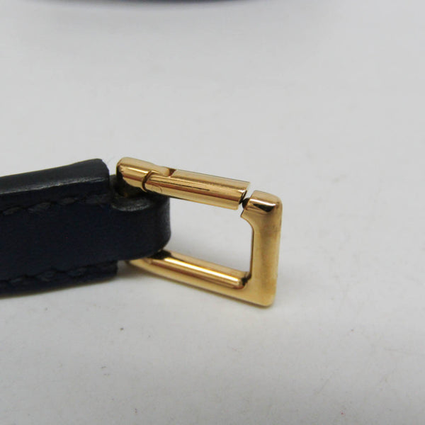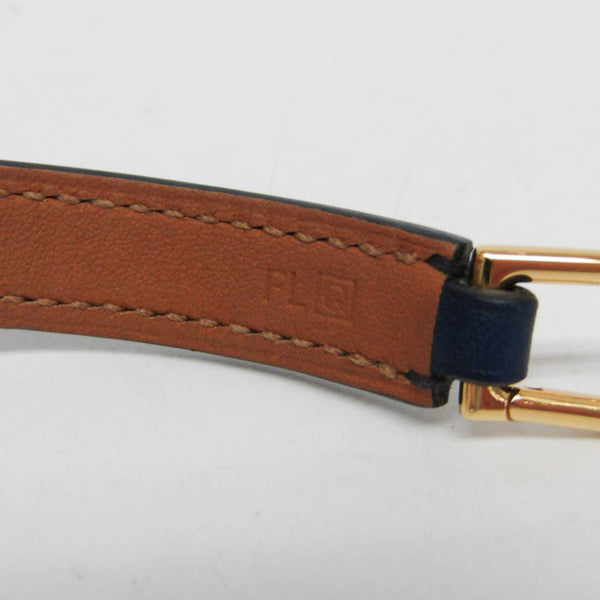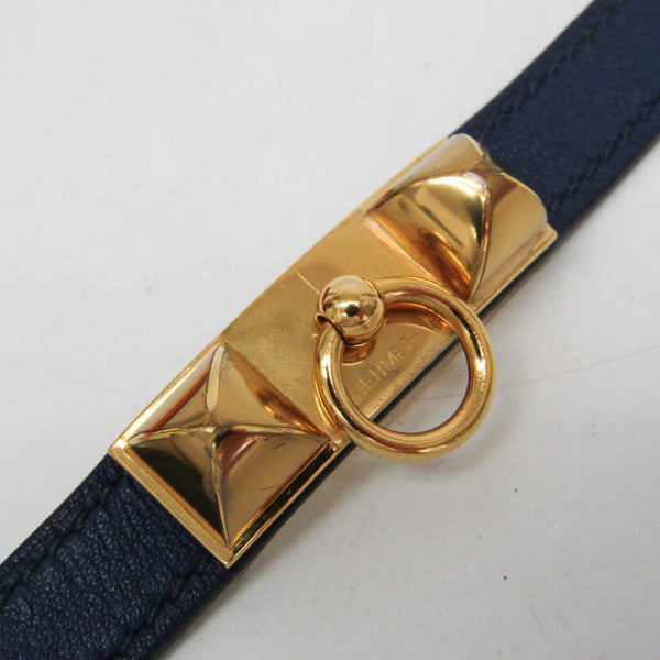 Hermes Rivale Double Tour Leather,Metal Wrap Bracelet Gold,Navy