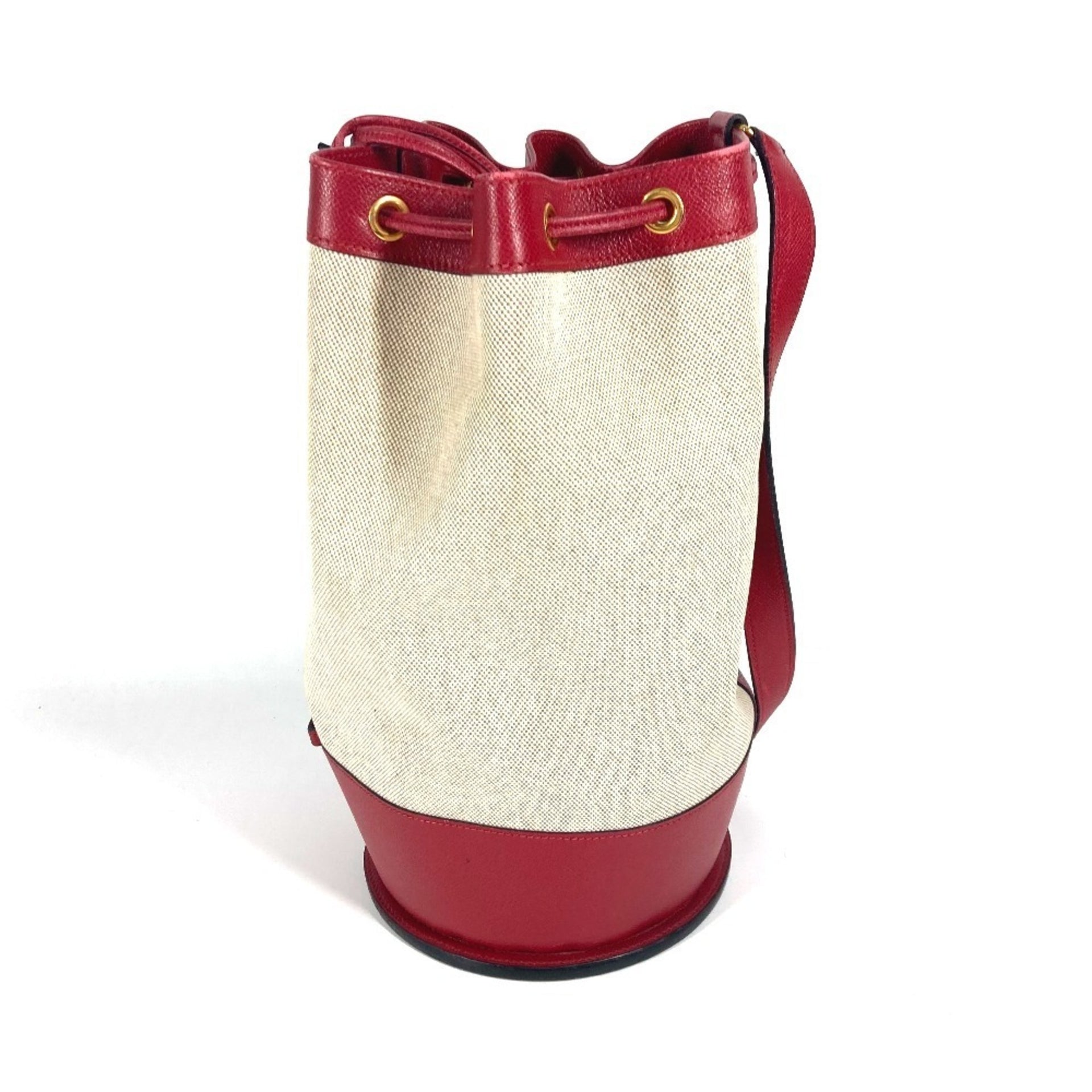 HERMES Vintage Standy Bag, Crossbody Drawstring Shoulder Leather and Canvas, Women\'s, Red