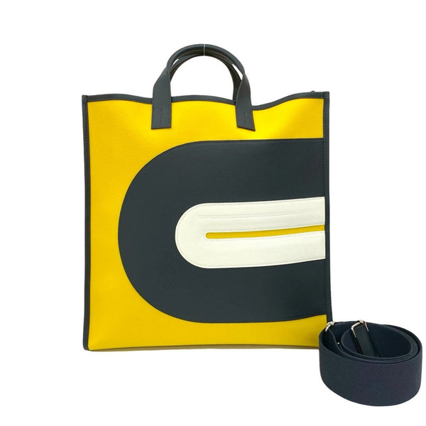 HERMES Vinyl Canvas Leather 2-Way Tote/Shoulder Bag Yellow 79847