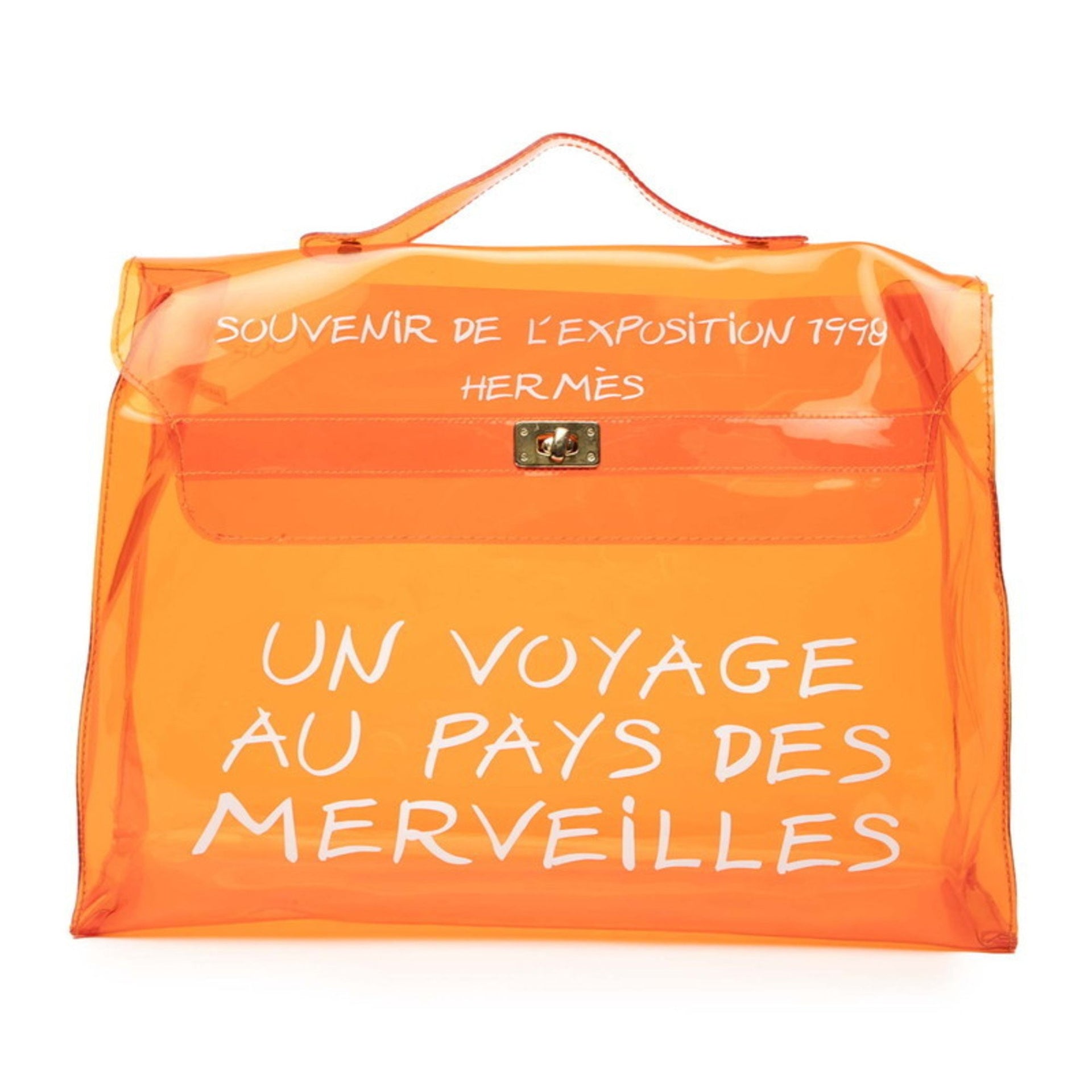 Hermès Vinyl Kelly \"Journey to Wonderland\" Exhibition Handbag, Orange, Gold Hardware, Vinyl, Women\'s, HERMES