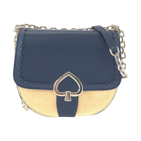 Kate Spade Navy Leather Raffia Shoulder Bag Pochette for Women