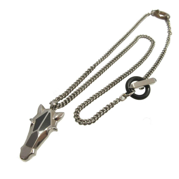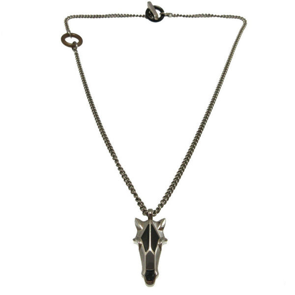 Like new Hermès Destrier GD0233 (2023) Metal Buffalo Horn Silver Necklace 1382 HERMES