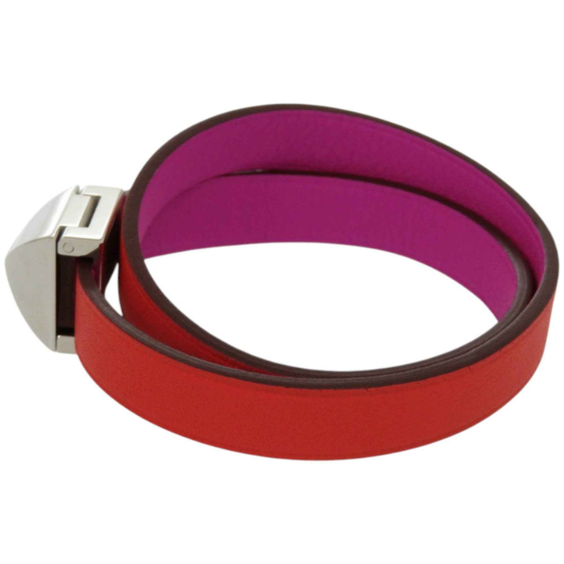 Like new Hermès Double Tour Infinie Medor leather and metal orange purple bicolor bracelet 0160 HERMES