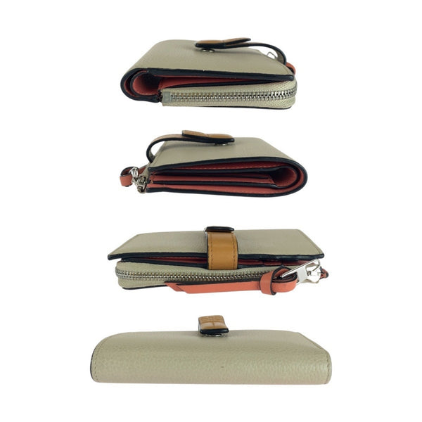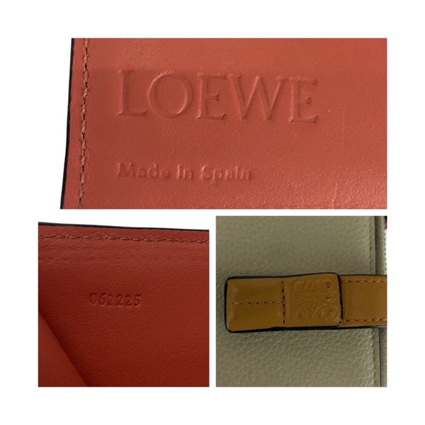 LOEWE Anagram Beige Brown Silver Hardware Leather Compact Wallet for Women