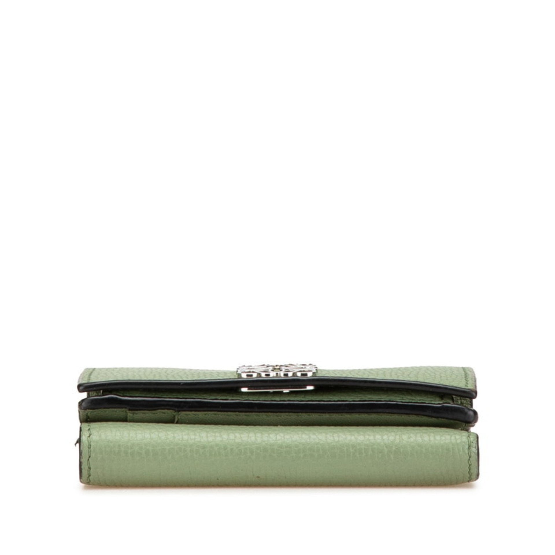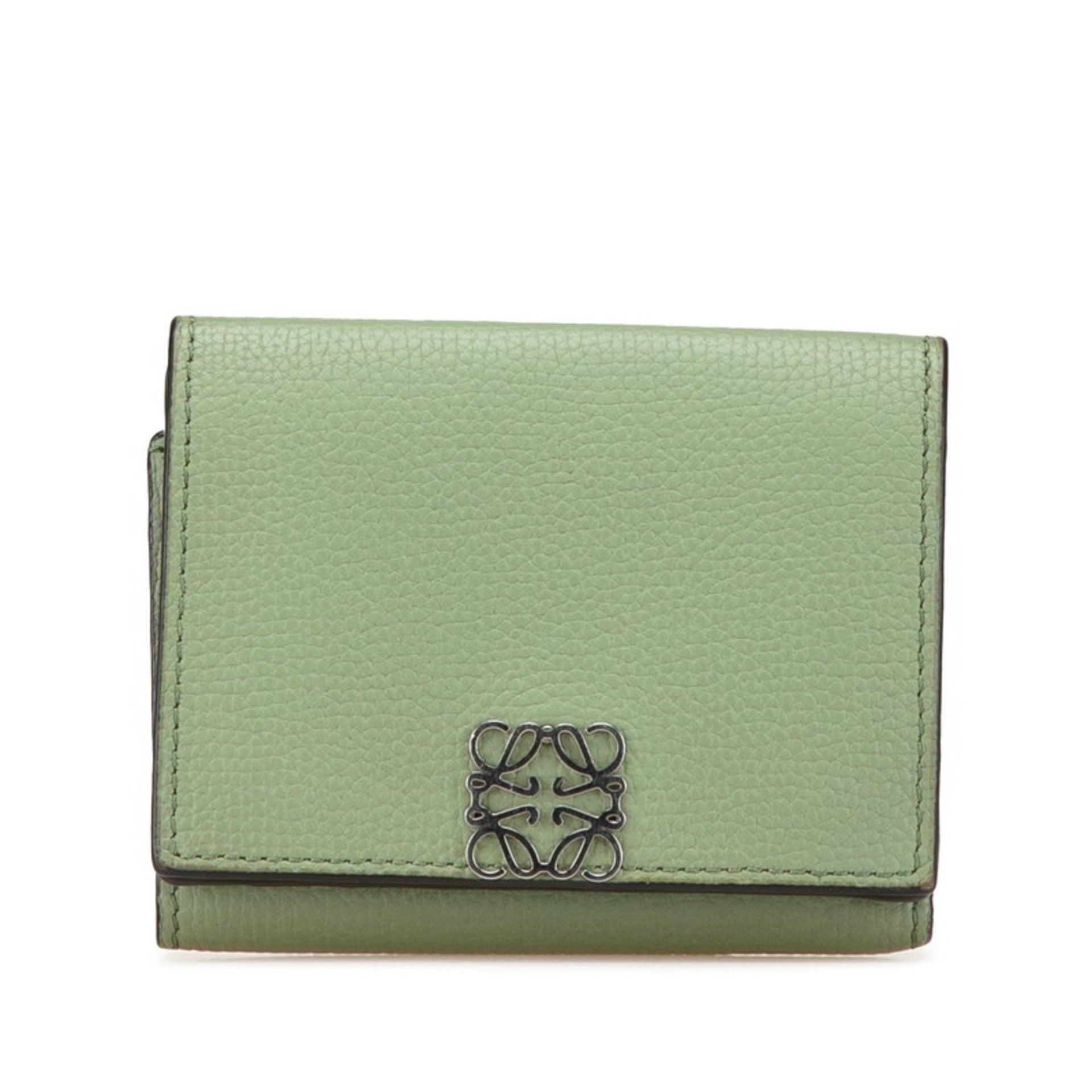 LOEWE Anagram Trifold Wallet Green Calf Leather Women\'s