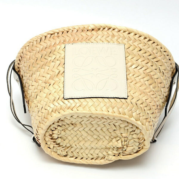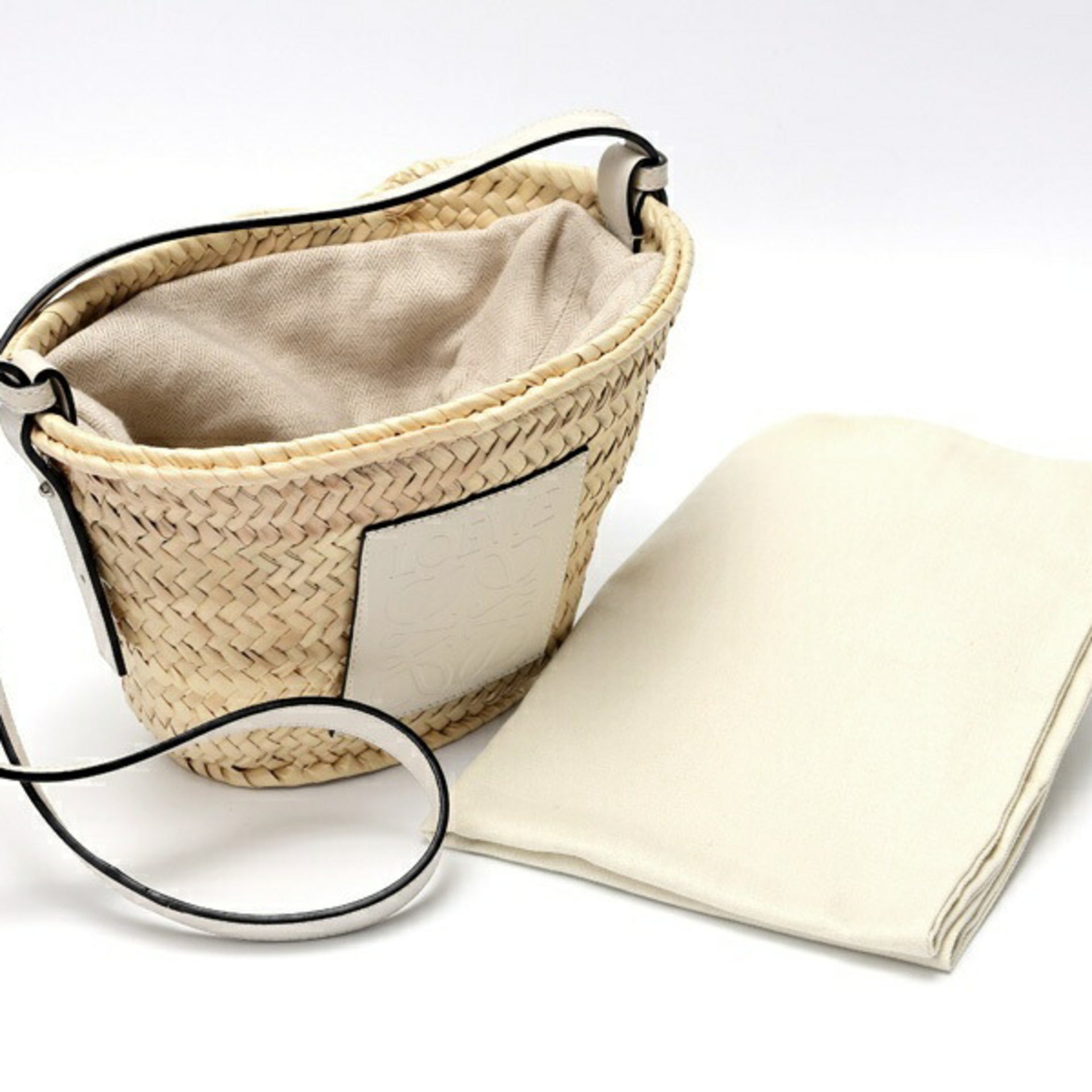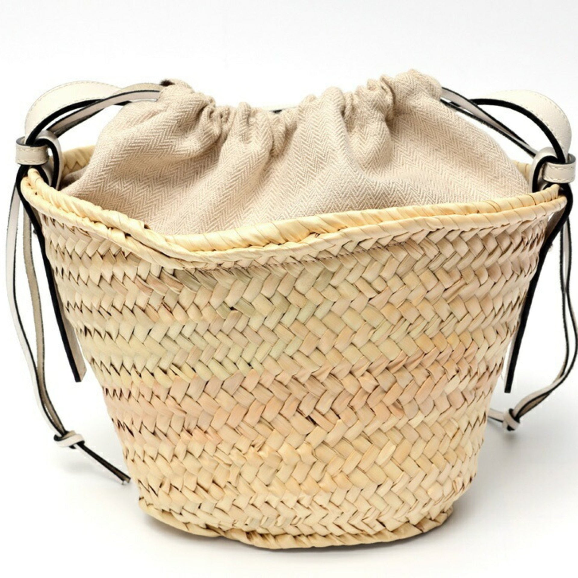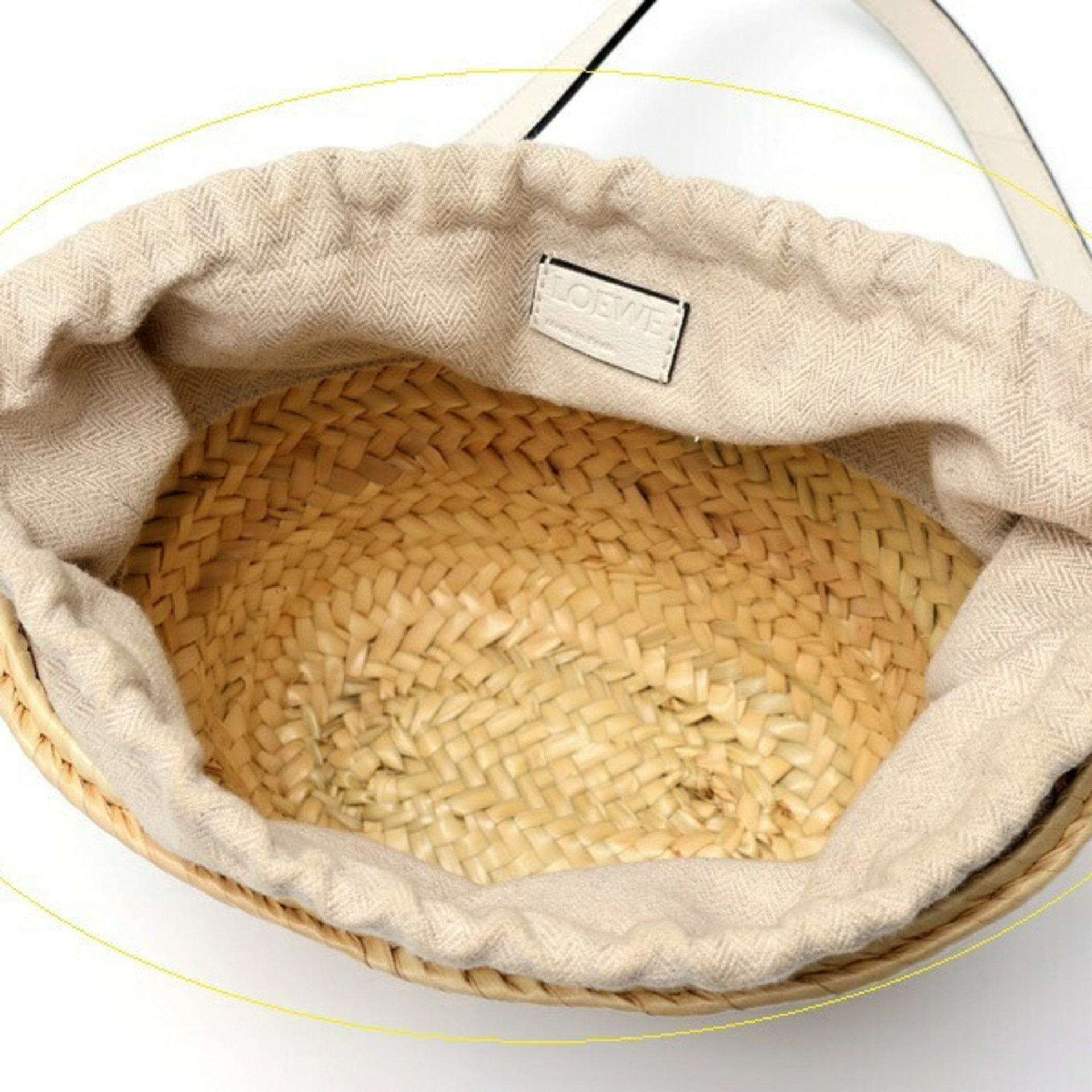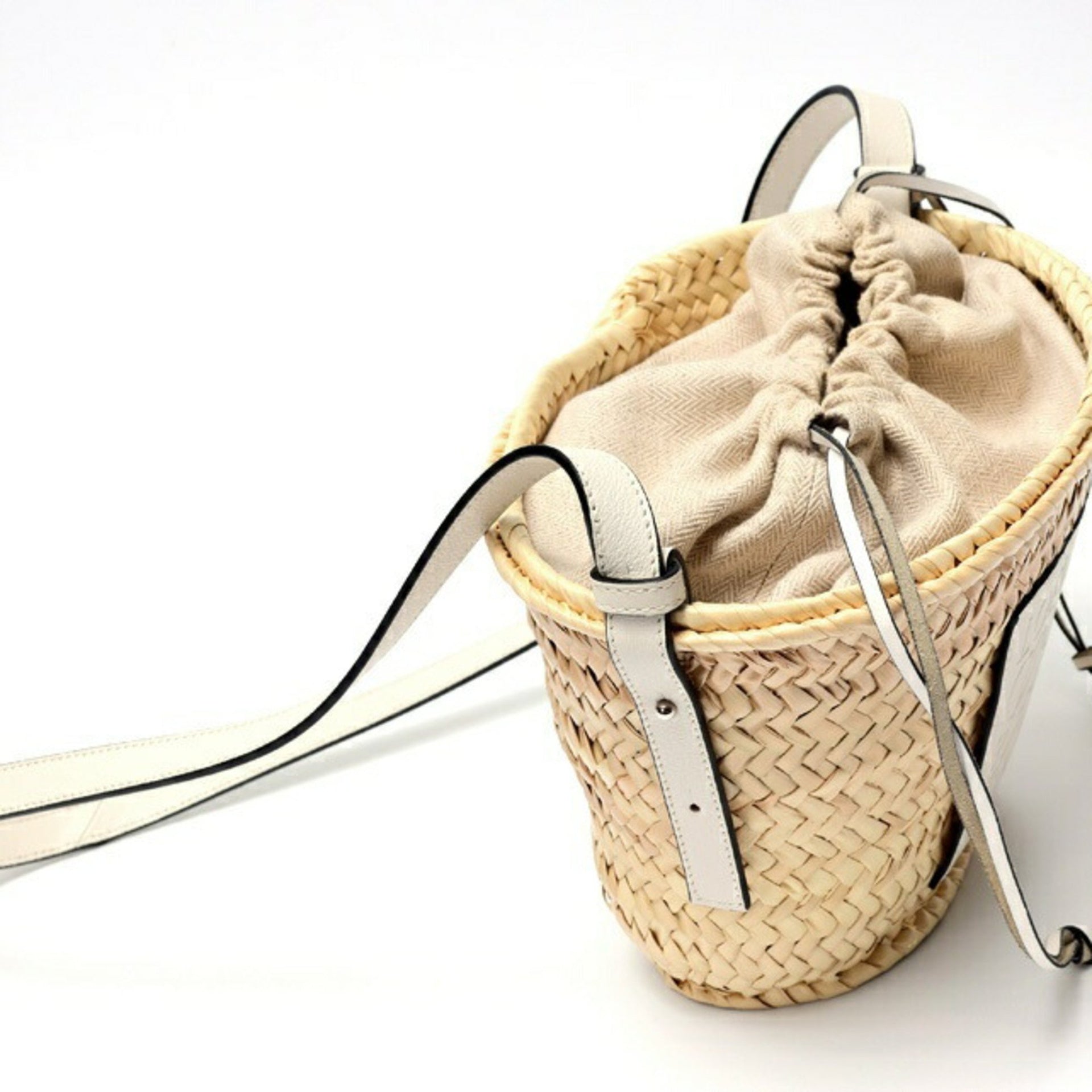 LOEWE Drawstring Bucket Bag Shoulder A223222X01 Raffia (palm leaf)/calf Natural/White S-158479
