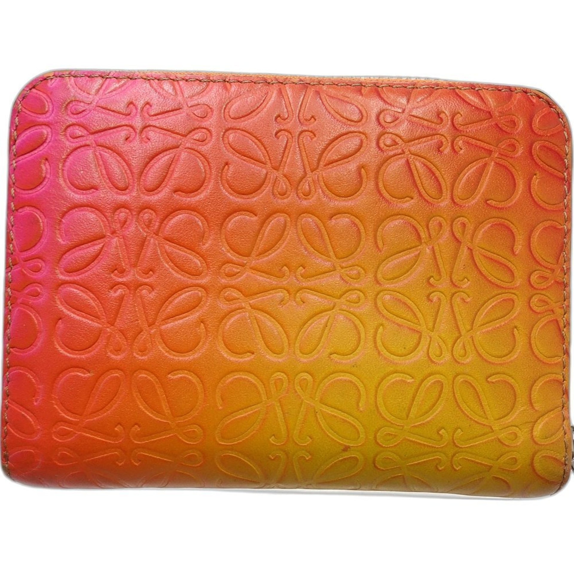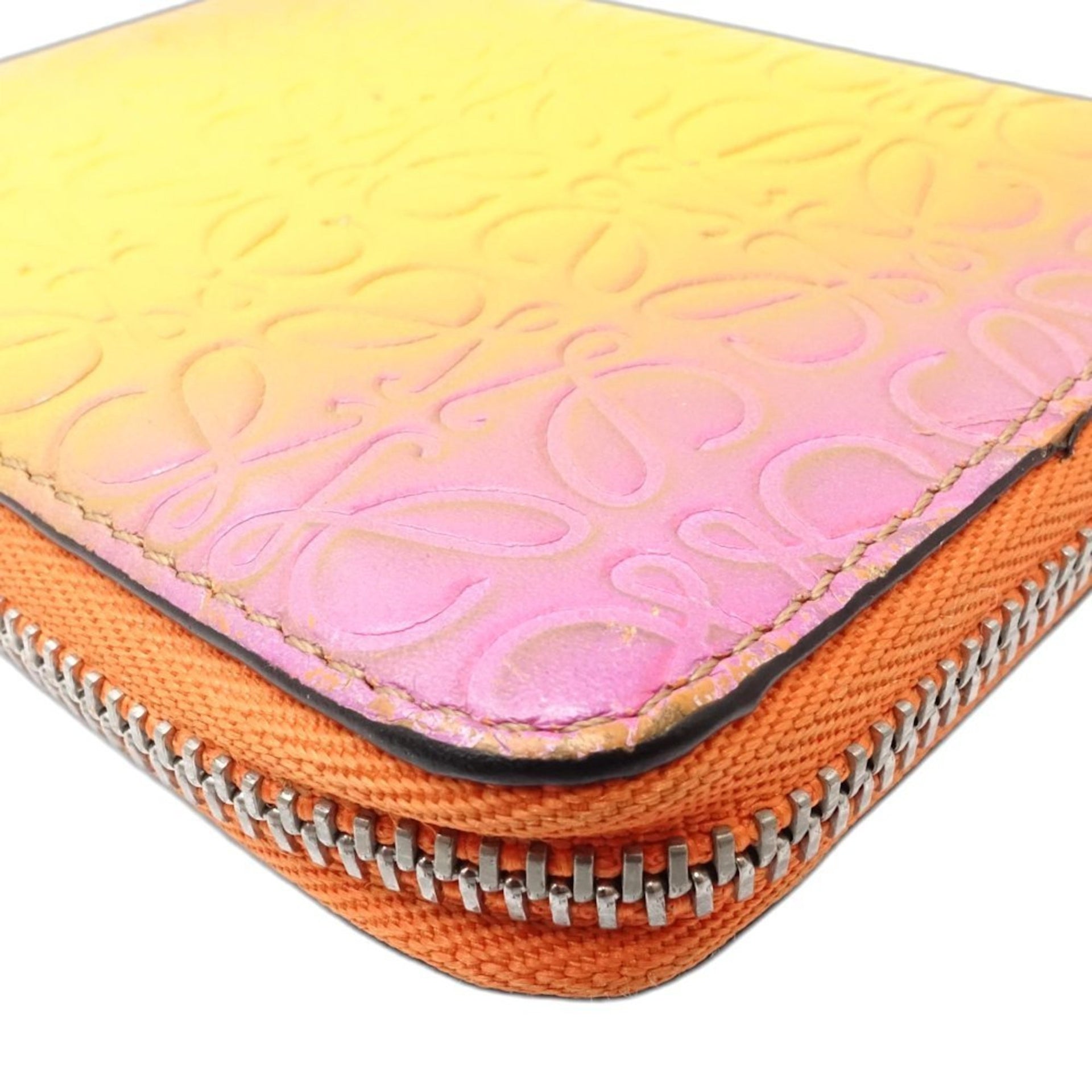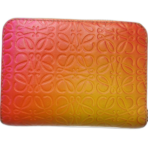 LOEWE Wallet/Coin Case 101901 6 Card Zip Wallet Leather Orange Multicolor 181301