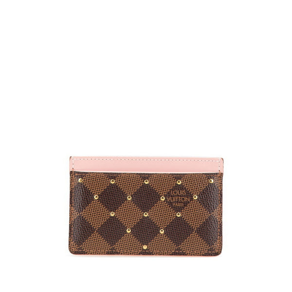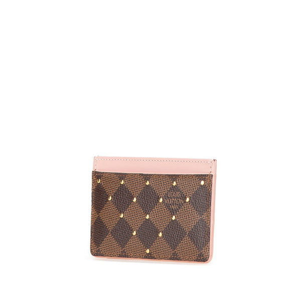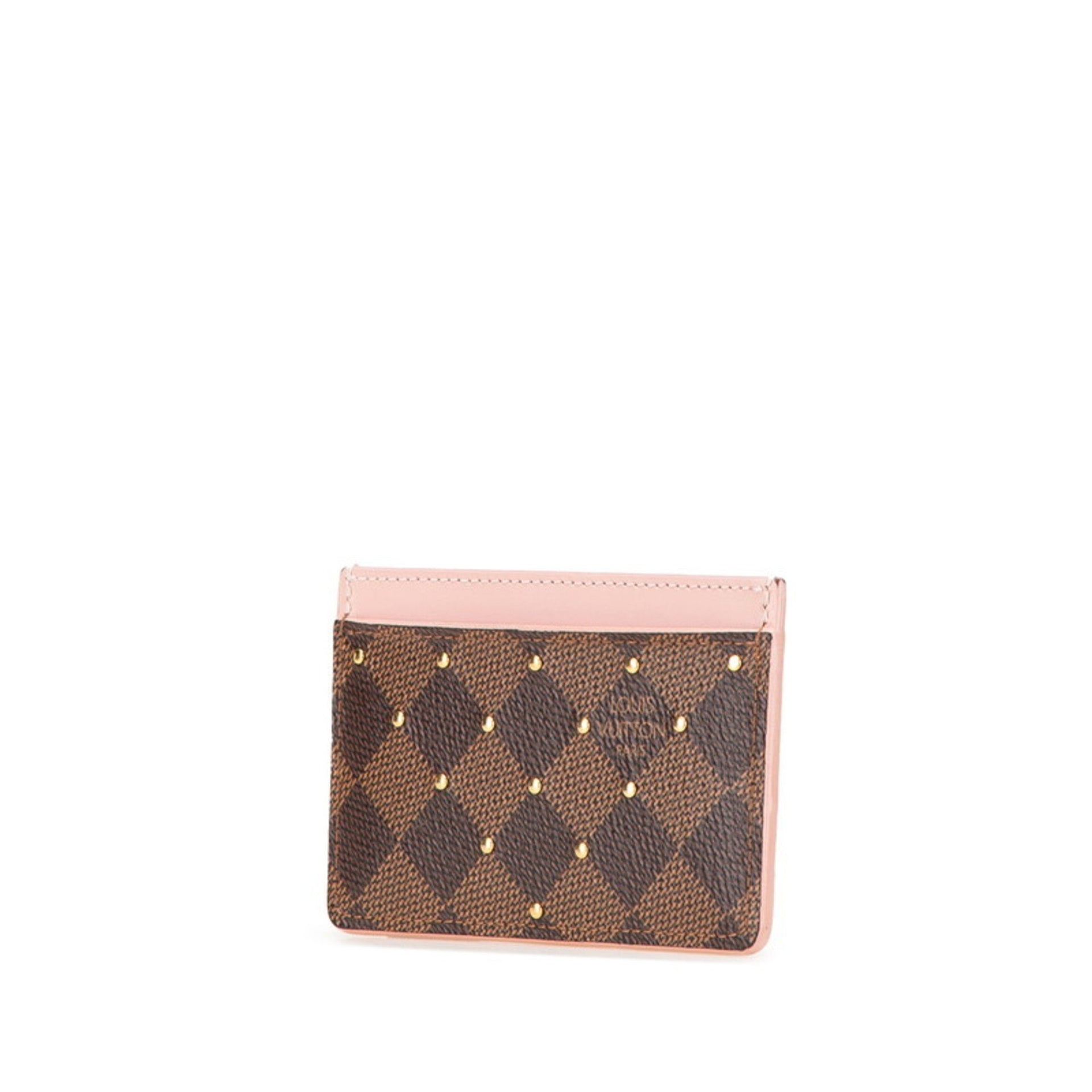 Louis Vuitton Damier Porte Carte Sample Studs Card Case N60248 Brown Pink PVC Leather Women\'s LOUIS VUITTON