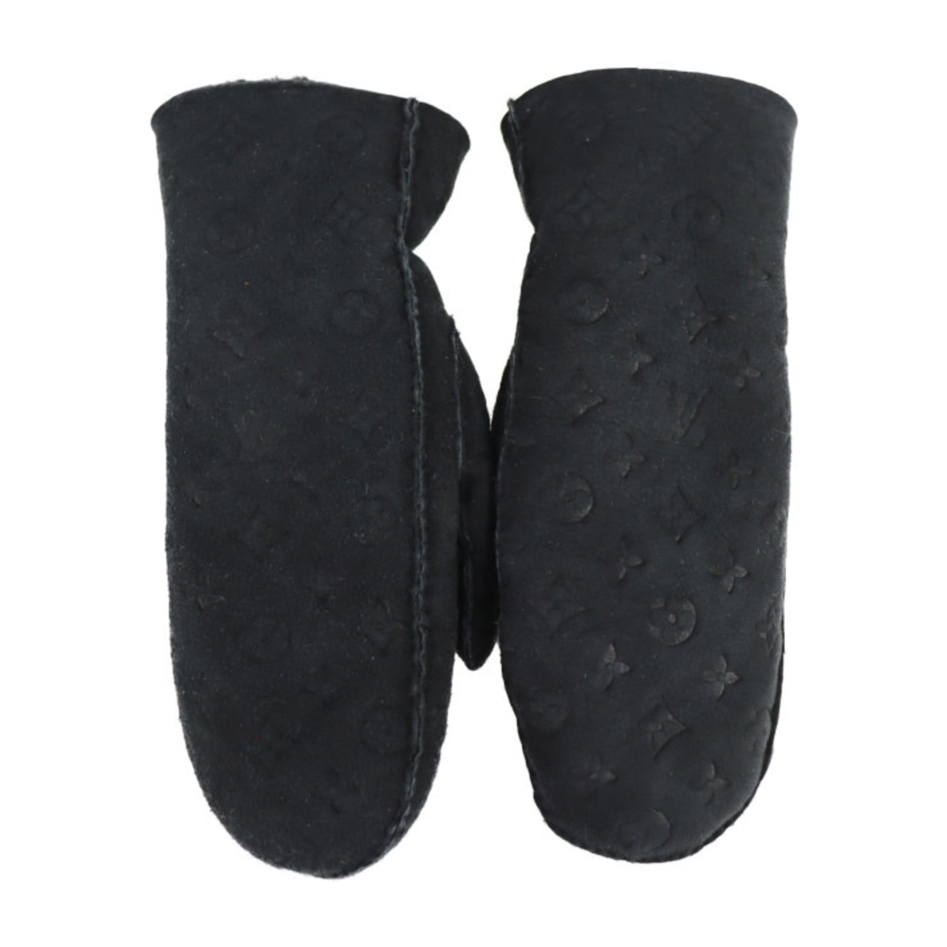 LOUIS VUITTON Louis Vuitton Muff Shearling Lamb Gloves M76454 Mouton Black Mitten