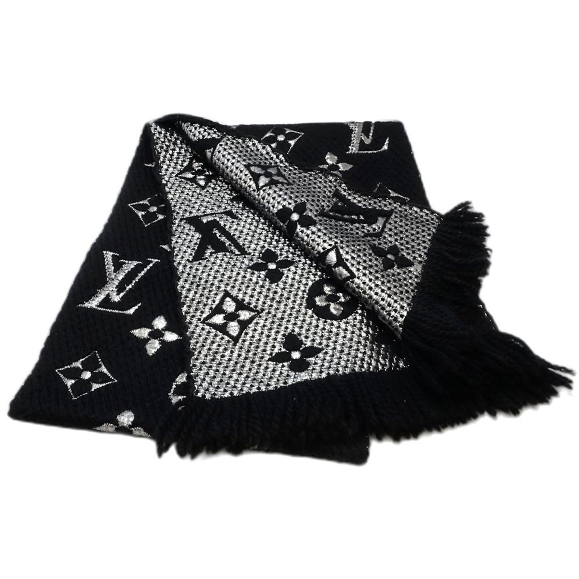 LOUIS VUITTON Louis Vuitton Scarf/Shawl M75833 Echerpe Mania Shine Black/Silver Women\'s 181772