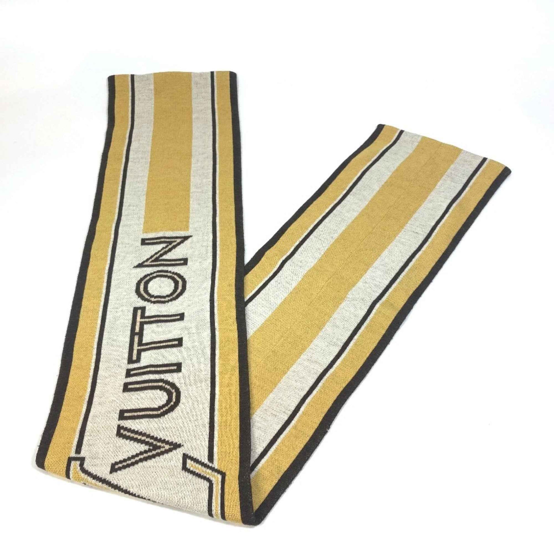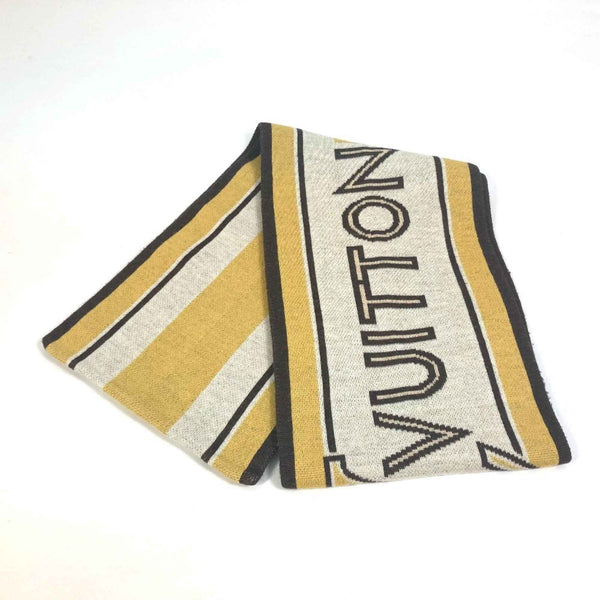 LOUIS VUITTON Louis Vuitton Striped Scarf with Logo, Wool, Women\'s, Beige/Brown