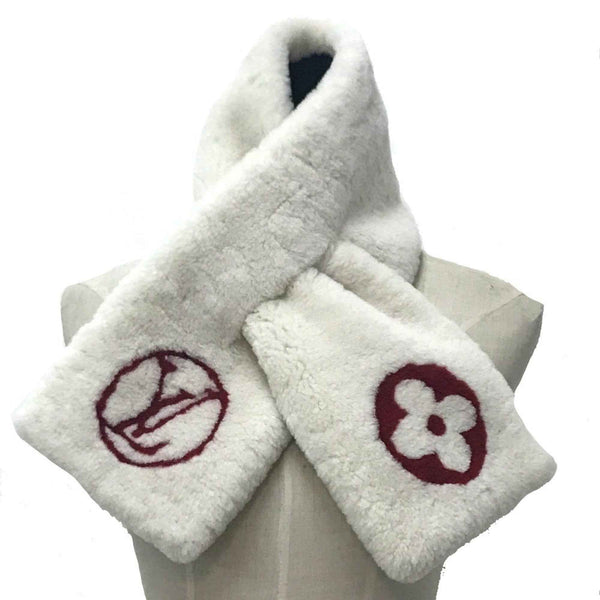 LOUIS VUITTON M70434 Monogram Flower Echarpe Shirring Darling Stole Scarf Cashmere/Shearling Women\'s White x Red