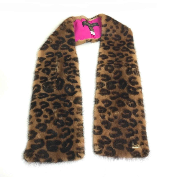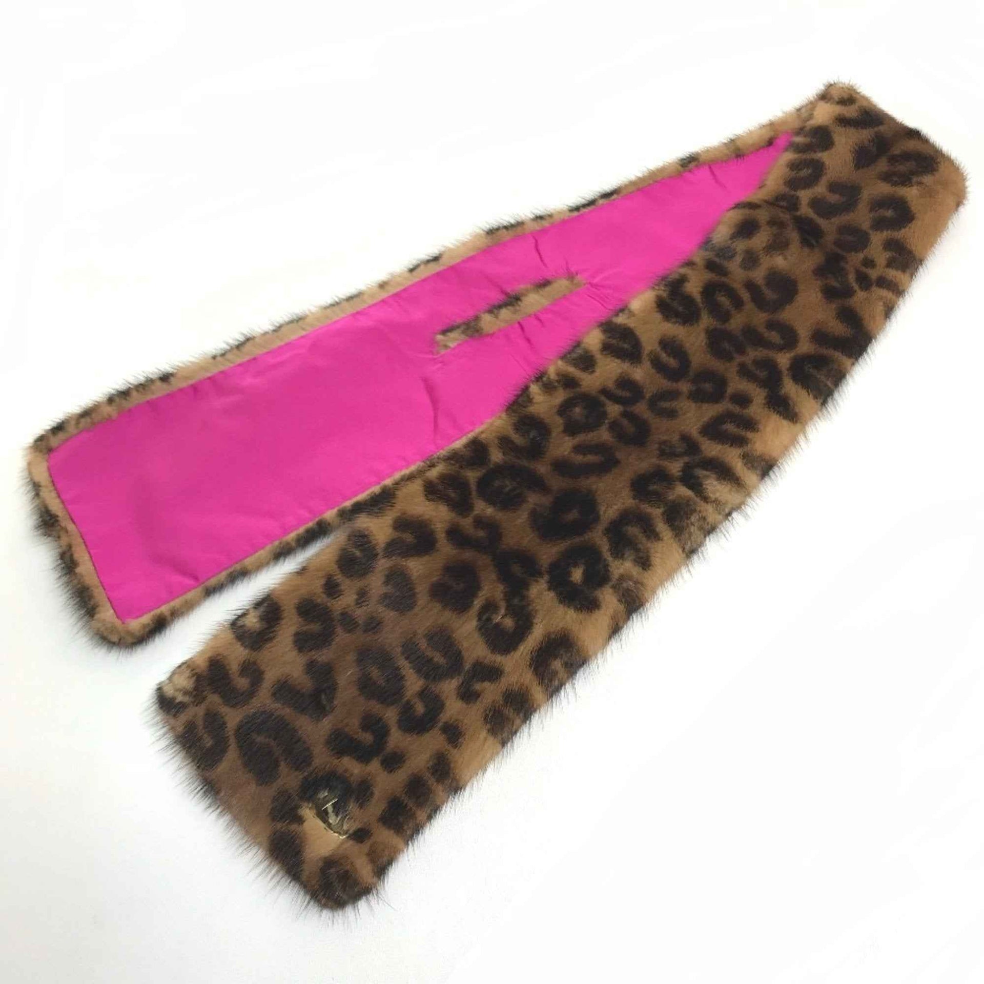 LOUIS VUITTON M72245 Leopard Print Echarpe Vison Fur Tippet Scarf, Fur/Silk, Women\'s, Brown/Pink