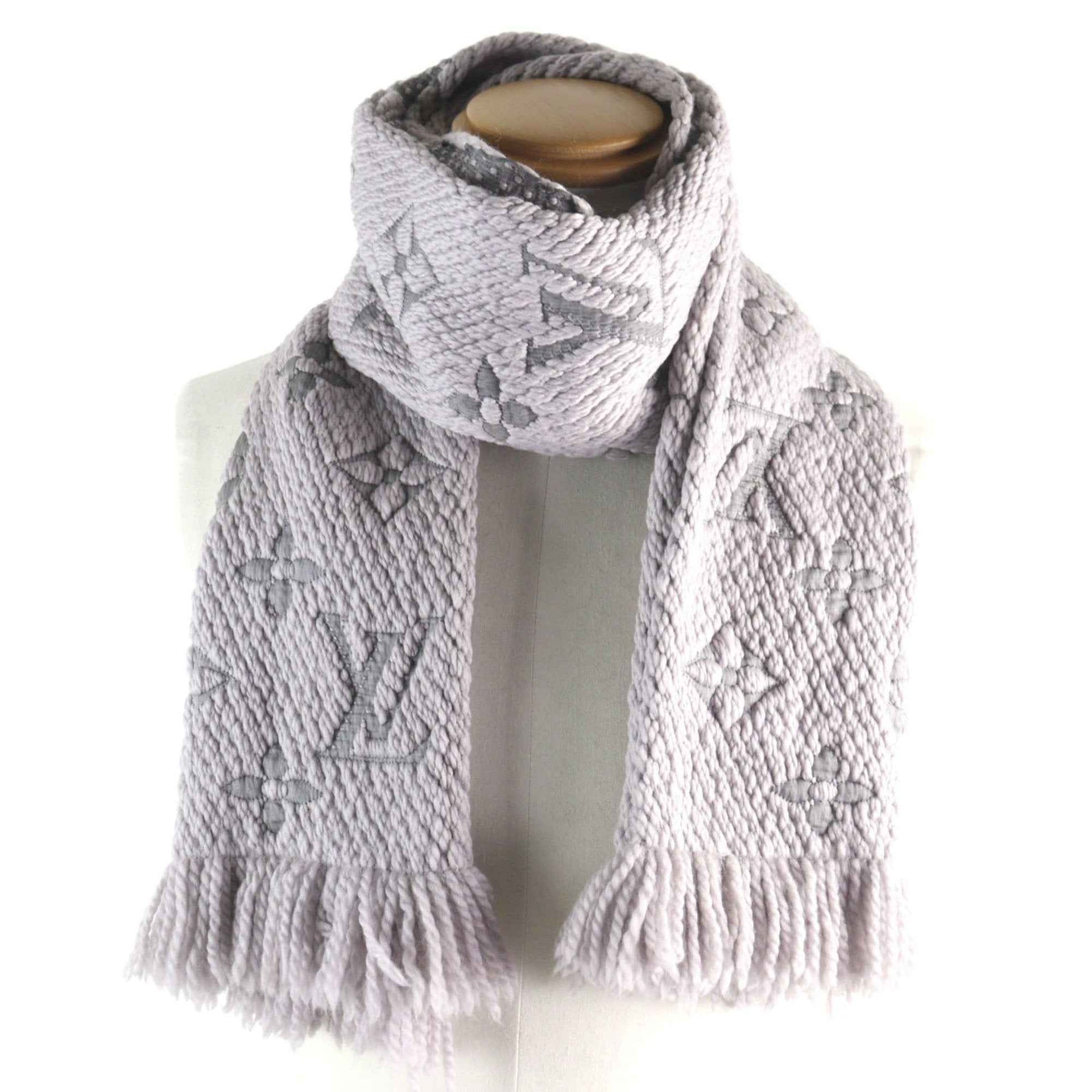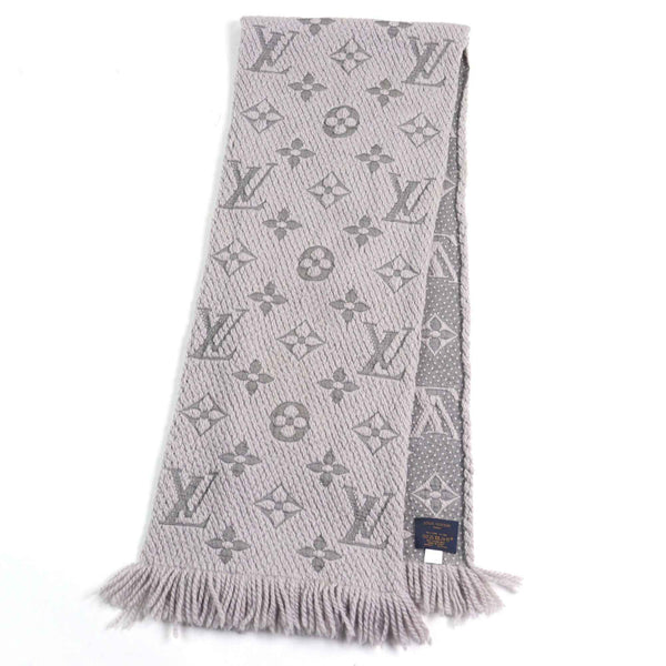 LOUIS VUITTON M74742 Echarpe Logomania Silk Blend Monogram Fringed Scarf, Gris Perle, Made in Italy, Authentic, Men\'s