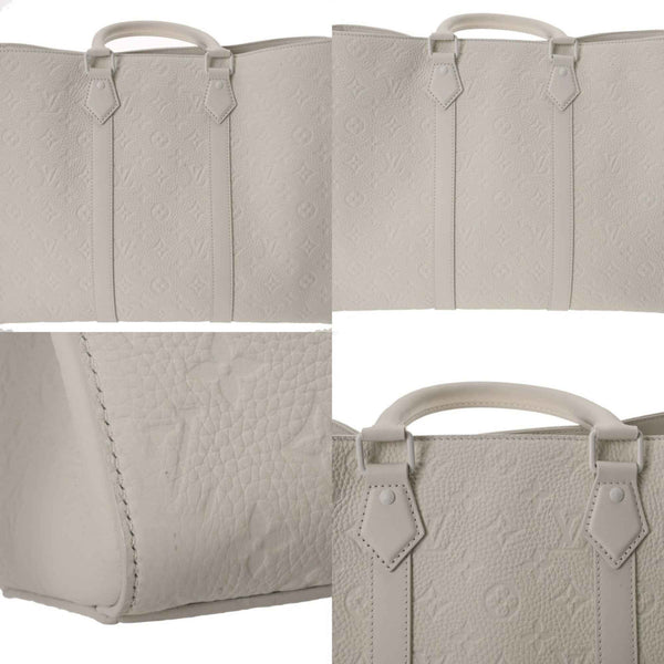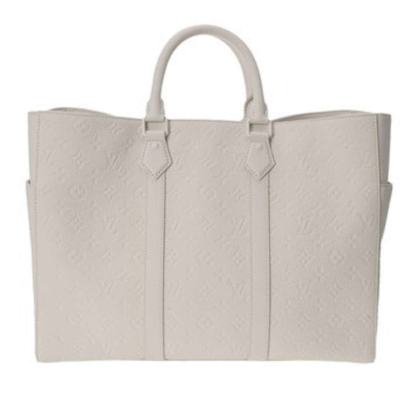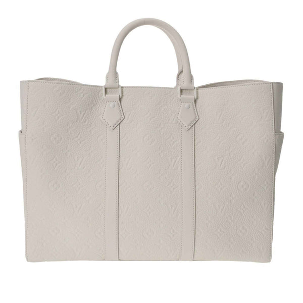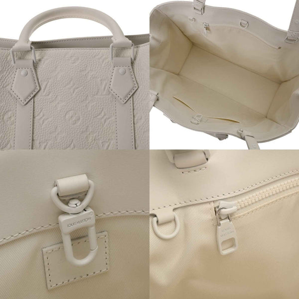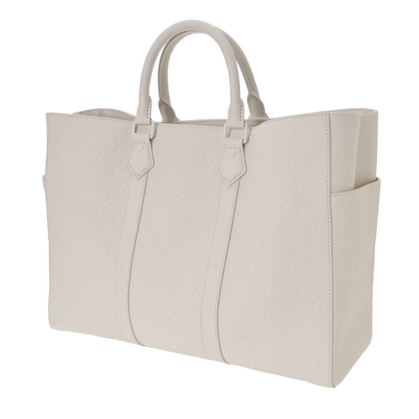 LOUIS VUITTON Monogram Empreinte Sac Plat 24H White M24383 Men\'s Taurillon Leather Tote Bag