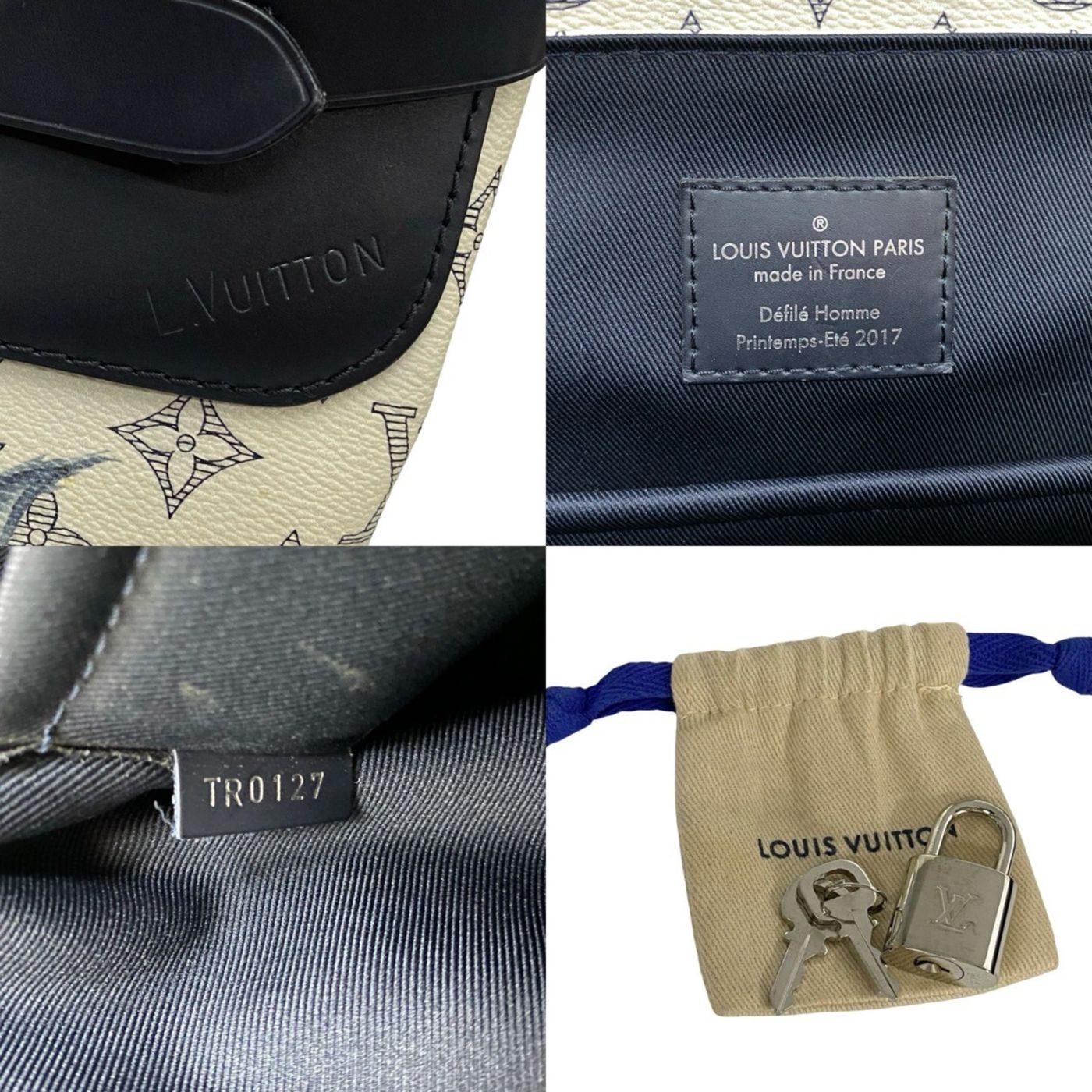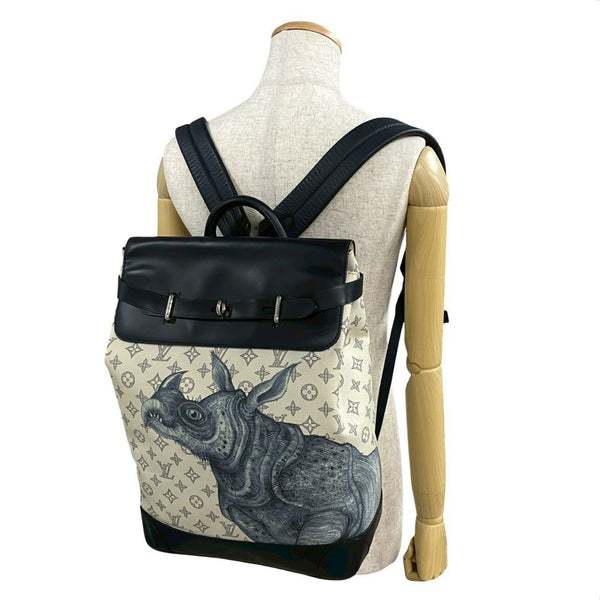 LOUIS VUITTON Monogram Savannah Steamer Leather Backpack, Navy and White, 178-1