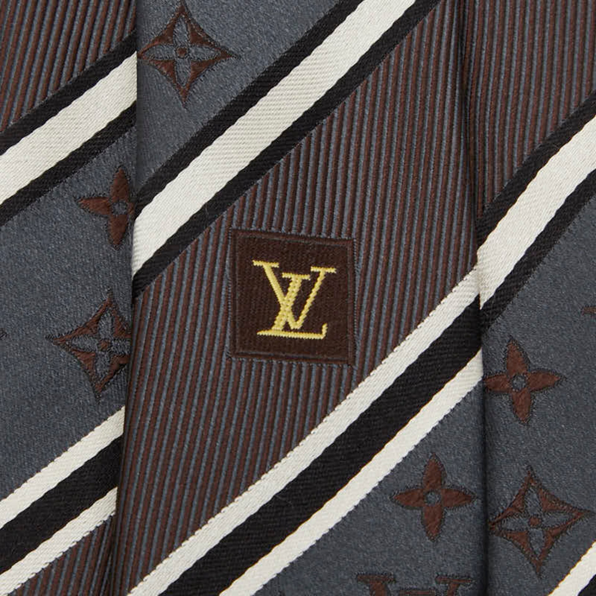 Louis Vuitton Monogram Tie, Brown and Gray Silk, Men\'s, LOUIS VUITTON