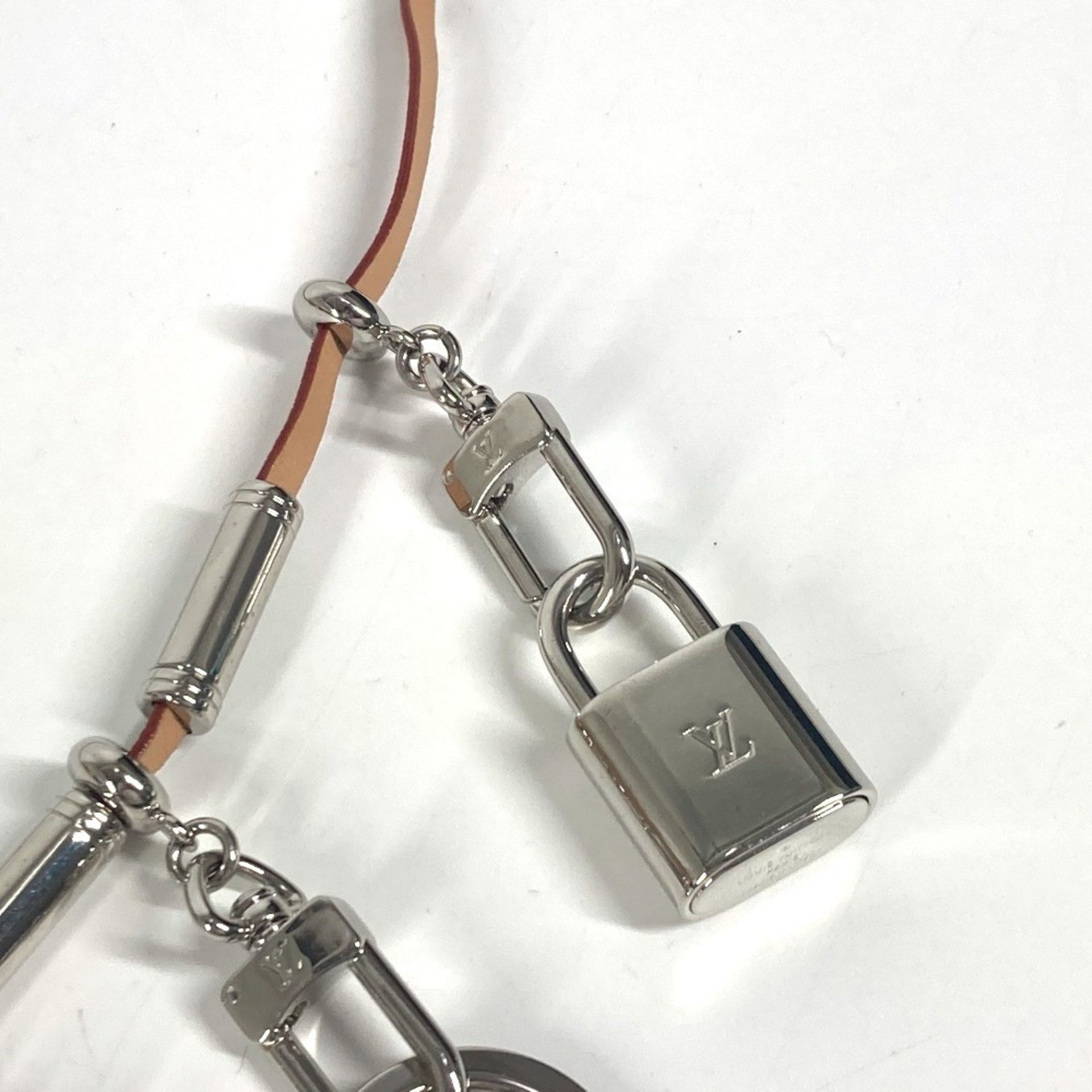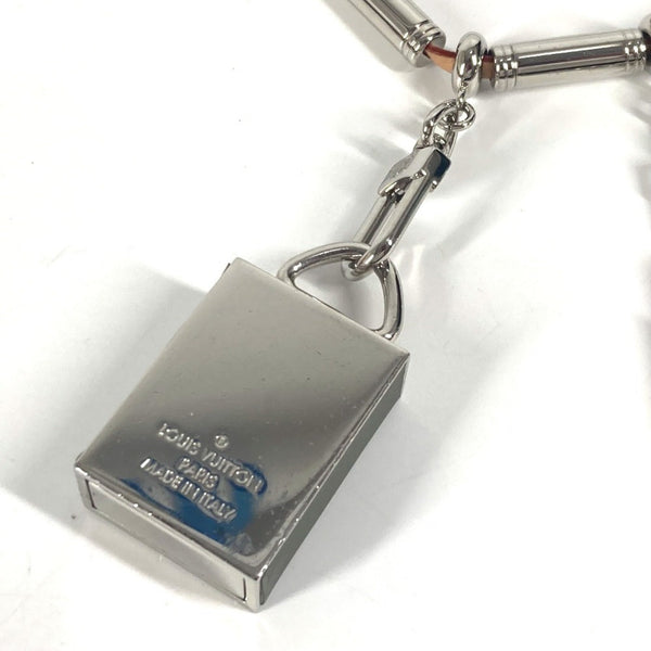 LOUIS VUITTON MP2140 Monogram Titanium Logo Big Padlock Key Whistle Shoulder Strap Necklace Metal Leather Men\'s Silver