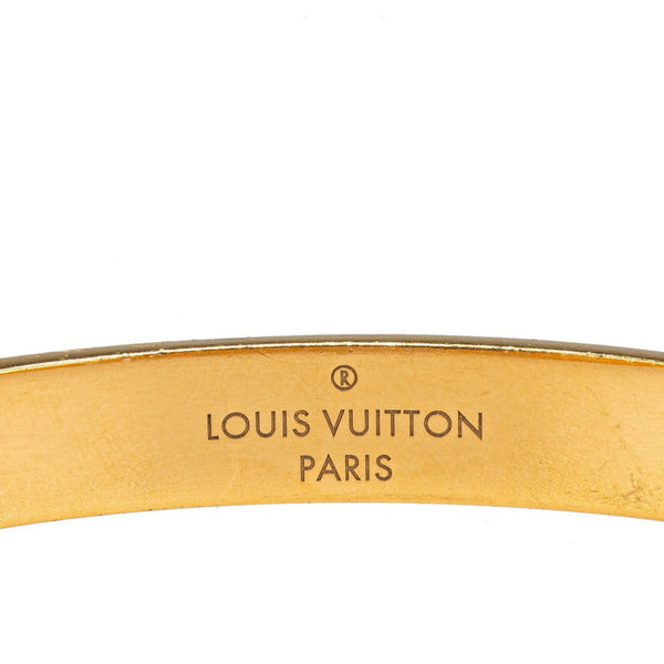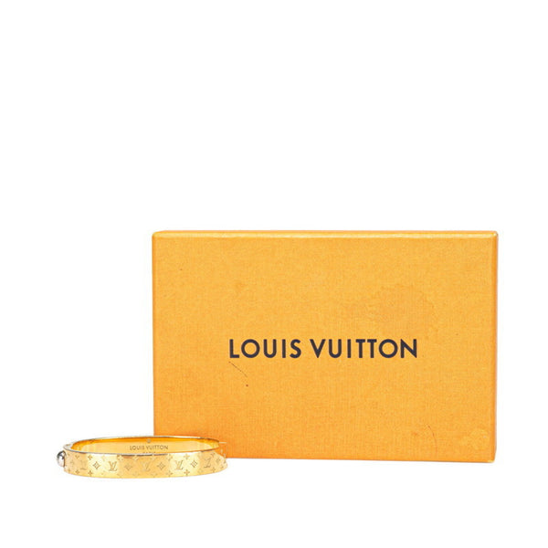 Louis Vuitton Nanogram Bracelet Cuff Bangle, Size M, M00252, Gold Plated Metal, Women\'s, LOUIS VUITTON