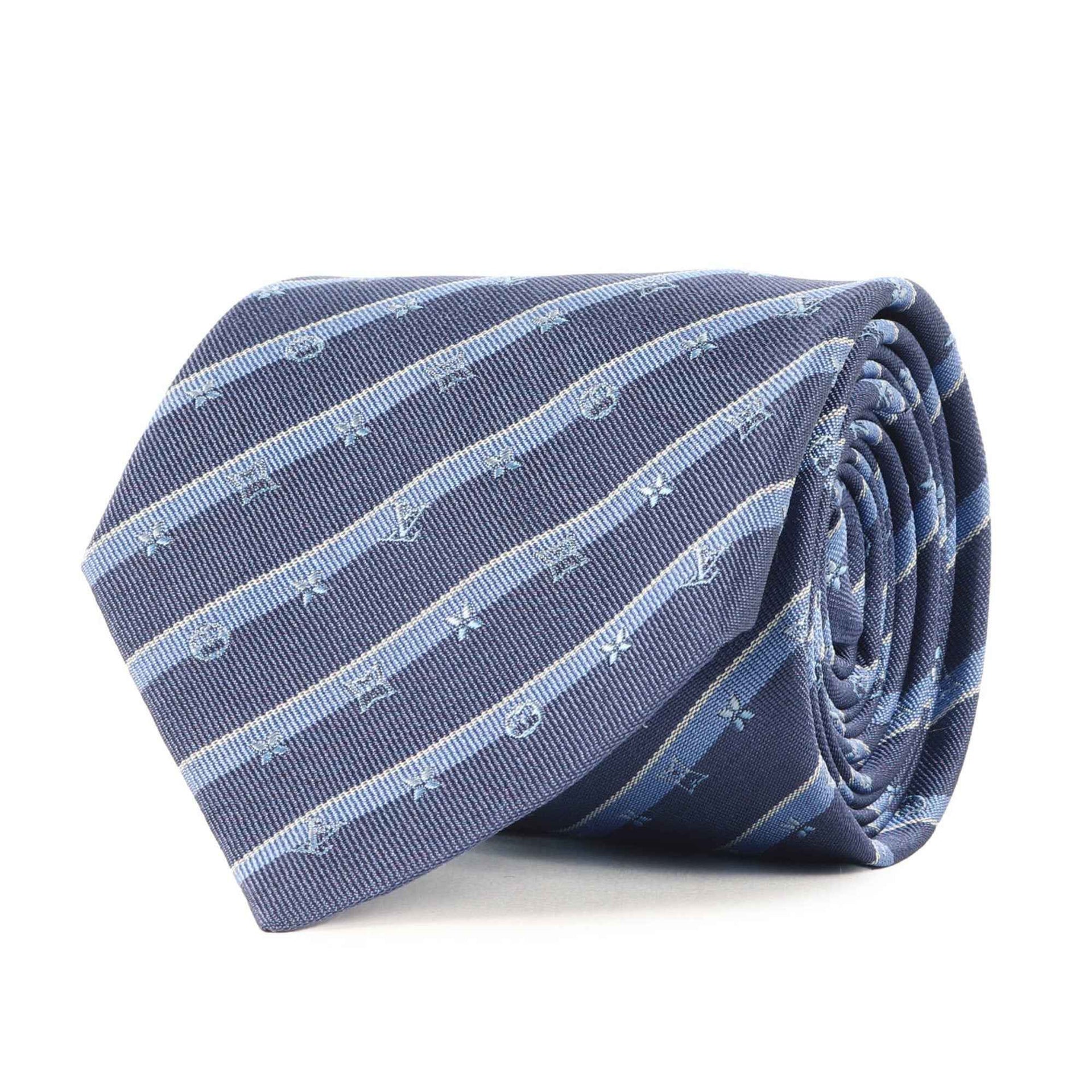 LOUIS VUITTON Regimental Monogram Silk Cravate Tie M71720 Blue Men\'s Like New K4616