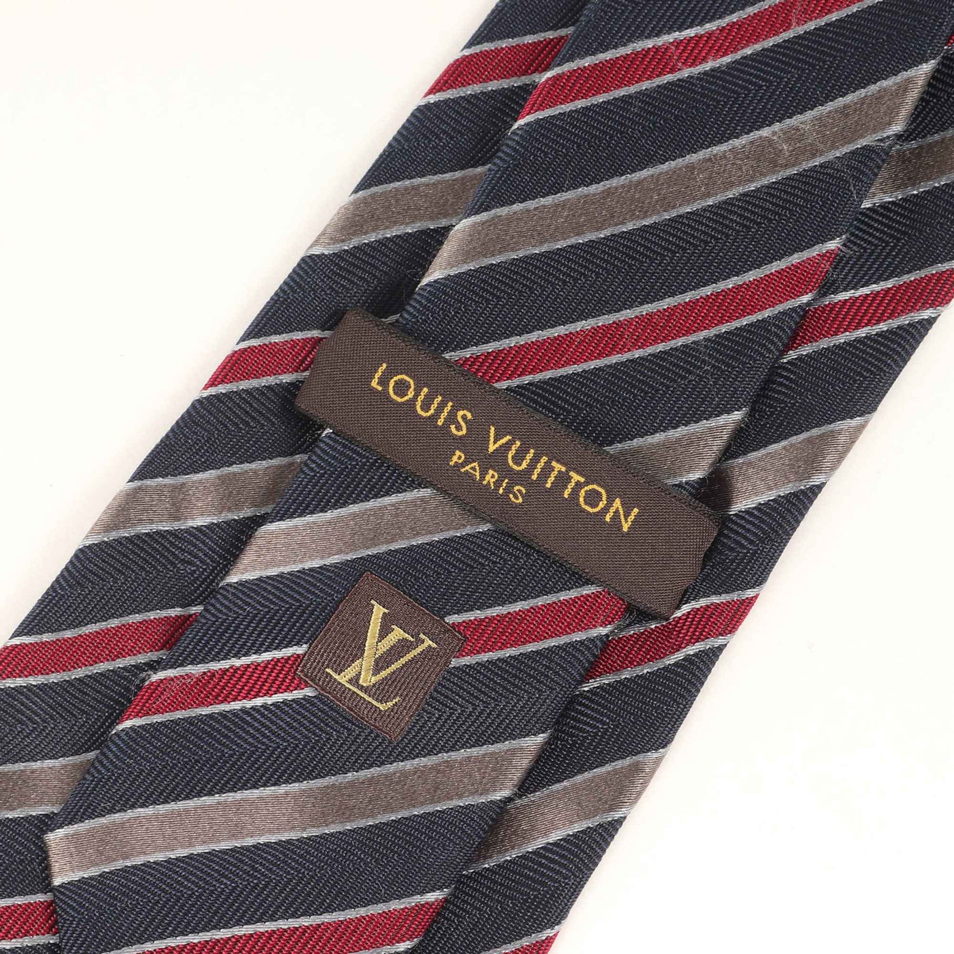 LOUIS VUITTON Regimental Silk Cravate Tie in Navy, Red, and Silver, Men\'s K4613