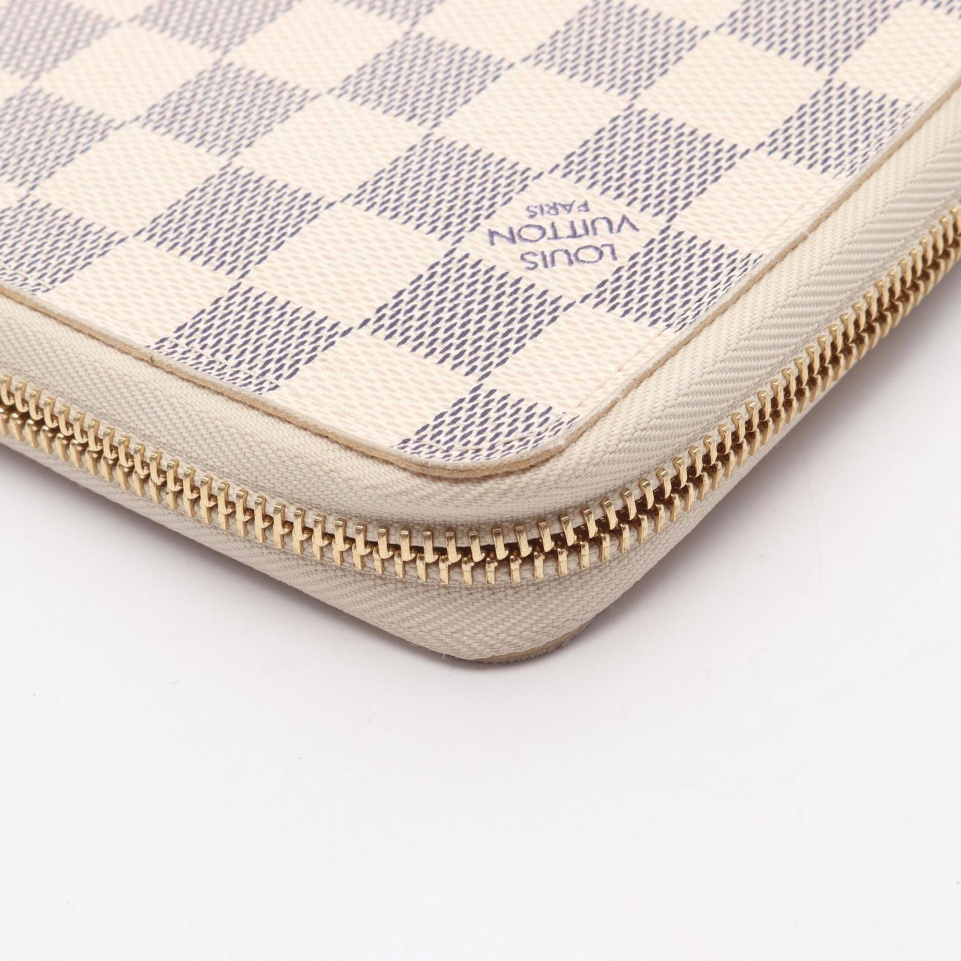 Louis Vuitton Zippy Organizer Round Long Wallet, Coated Canvas and Leather with Damier Azur Pattern, Women\'s, White, N60012